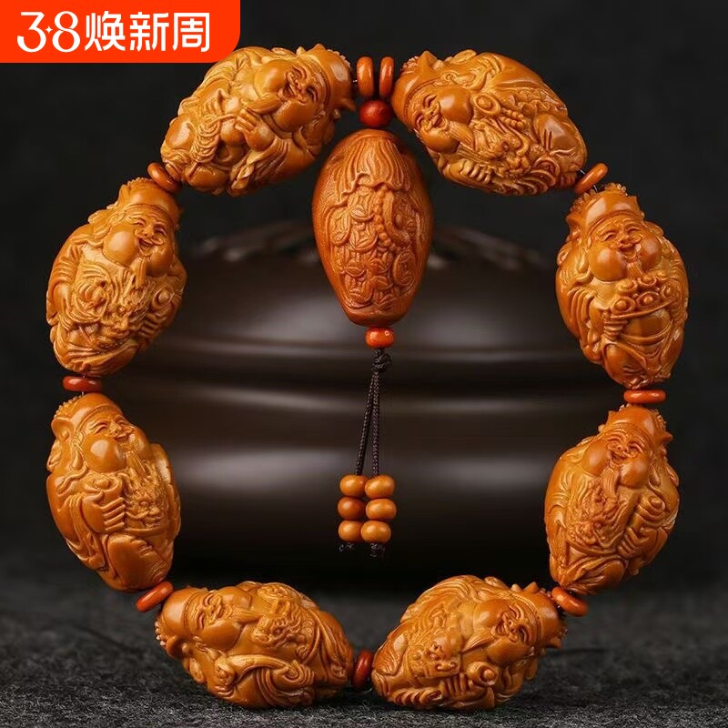1.9大籽瑞龙财神橄榄核手串八大财神爷核雕文玩招财生肖
