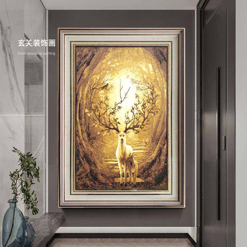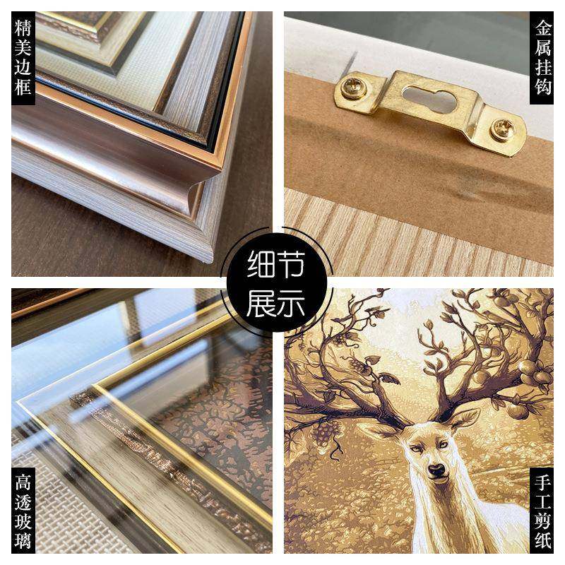 中国风特色手工多层套色剪纸装饰画现代中式轻奢玄关走廊一鹿高升