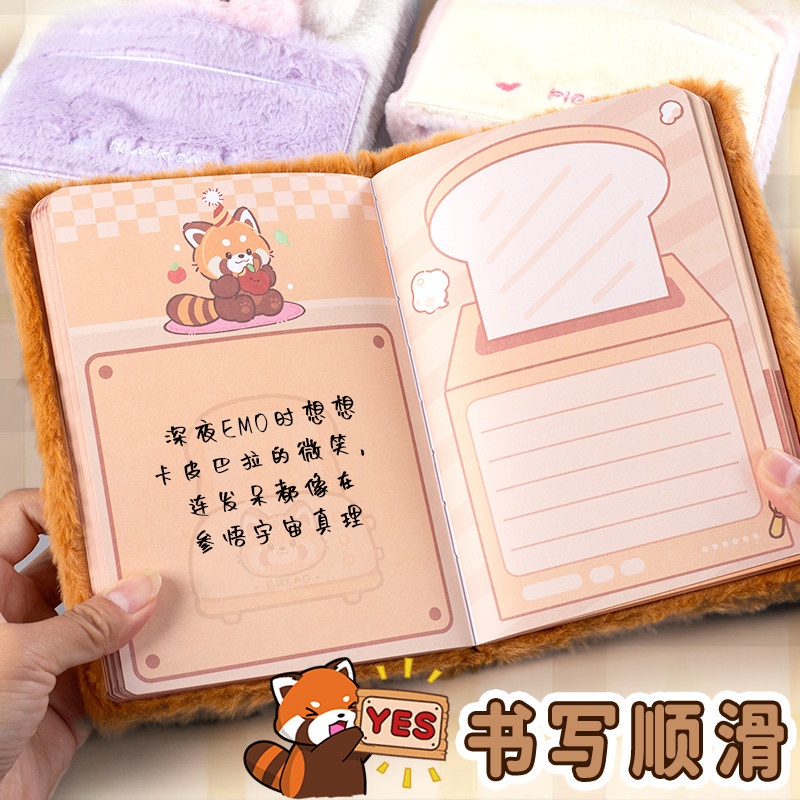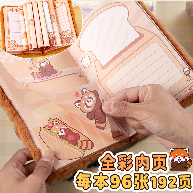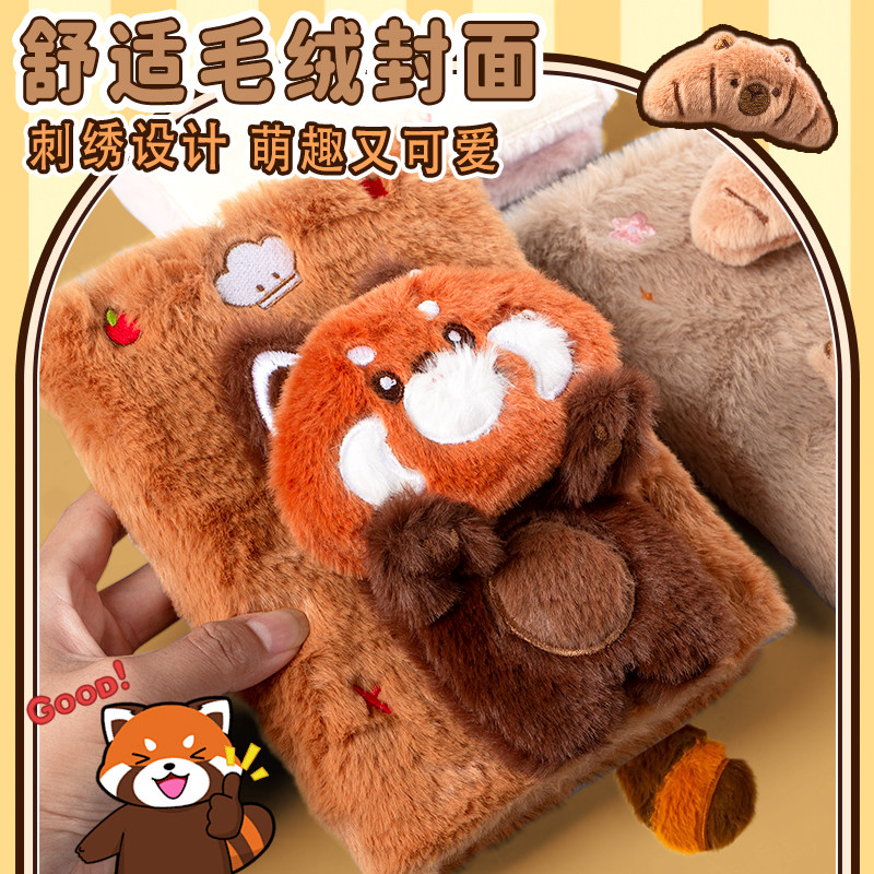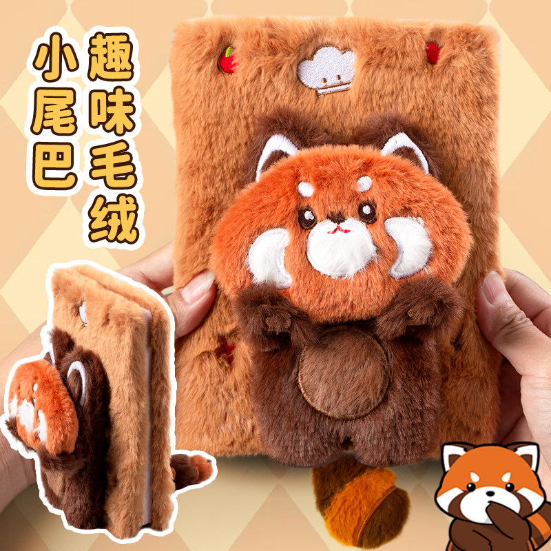 小熊猫波比毛绒本可爱笔记本子A5卡通高颜值可爱毛茸茸套装学生用2025新款少女心闺蜜礼物本子公仔毛绒手账本