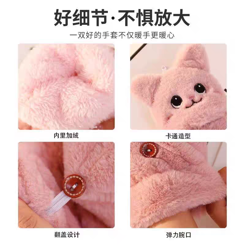 mikko联名可爱卡通猫咪毛绒手套女冬季翻盖半指触屏加厚骑行保暖