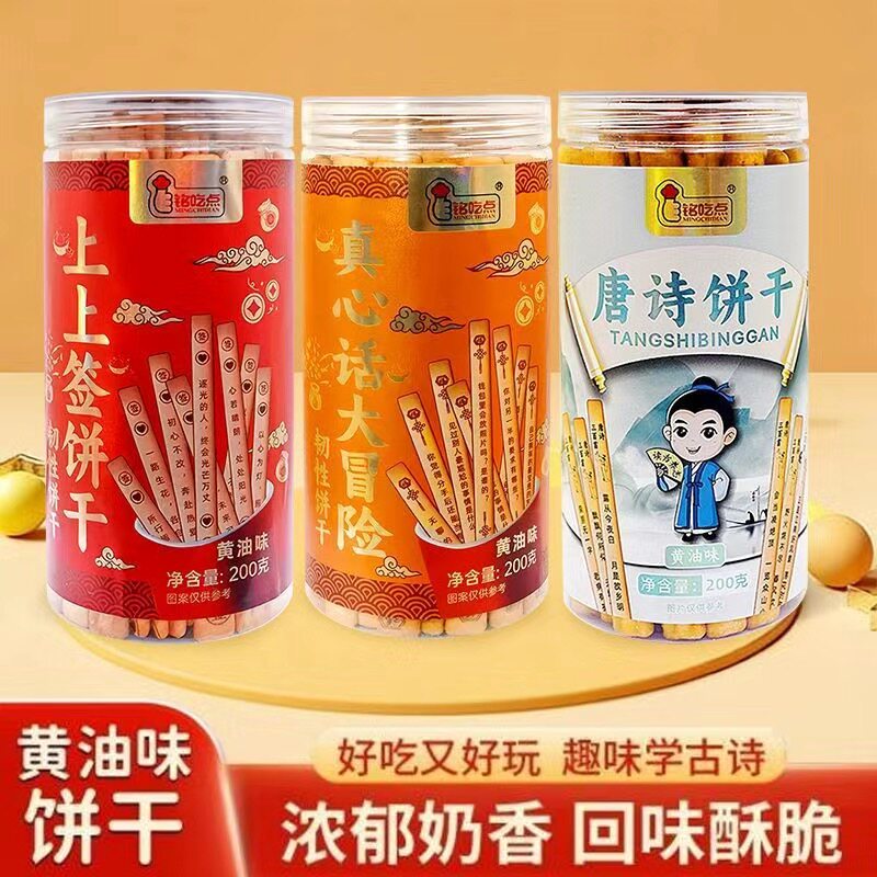上上签饼干唐诗黄油真心话大冒险网红爆款零食诗词抽签罐装健康
