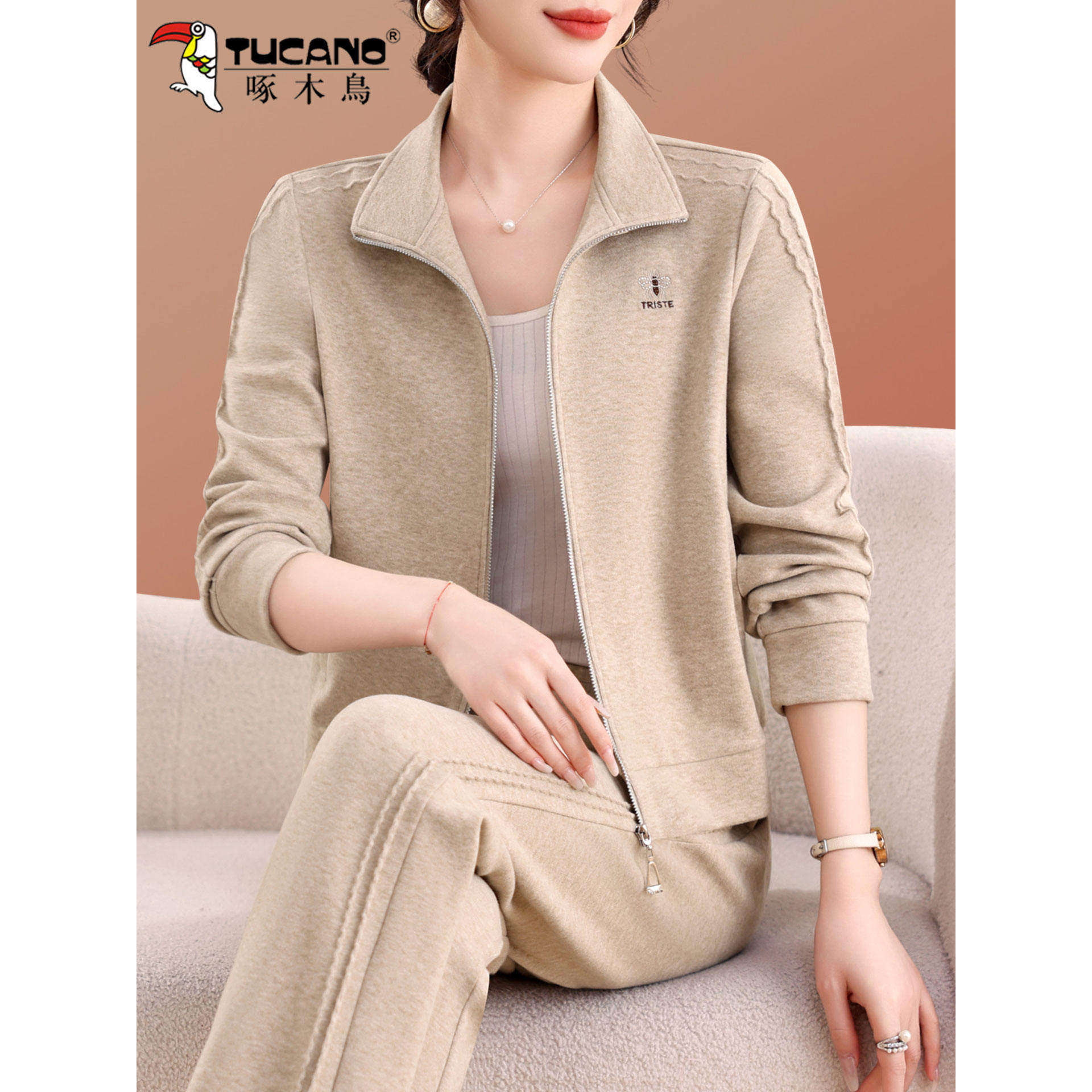 啄木鸟妈妈时尚运动服套装女春秋2025新款时髦减龄休闲开衫两件套