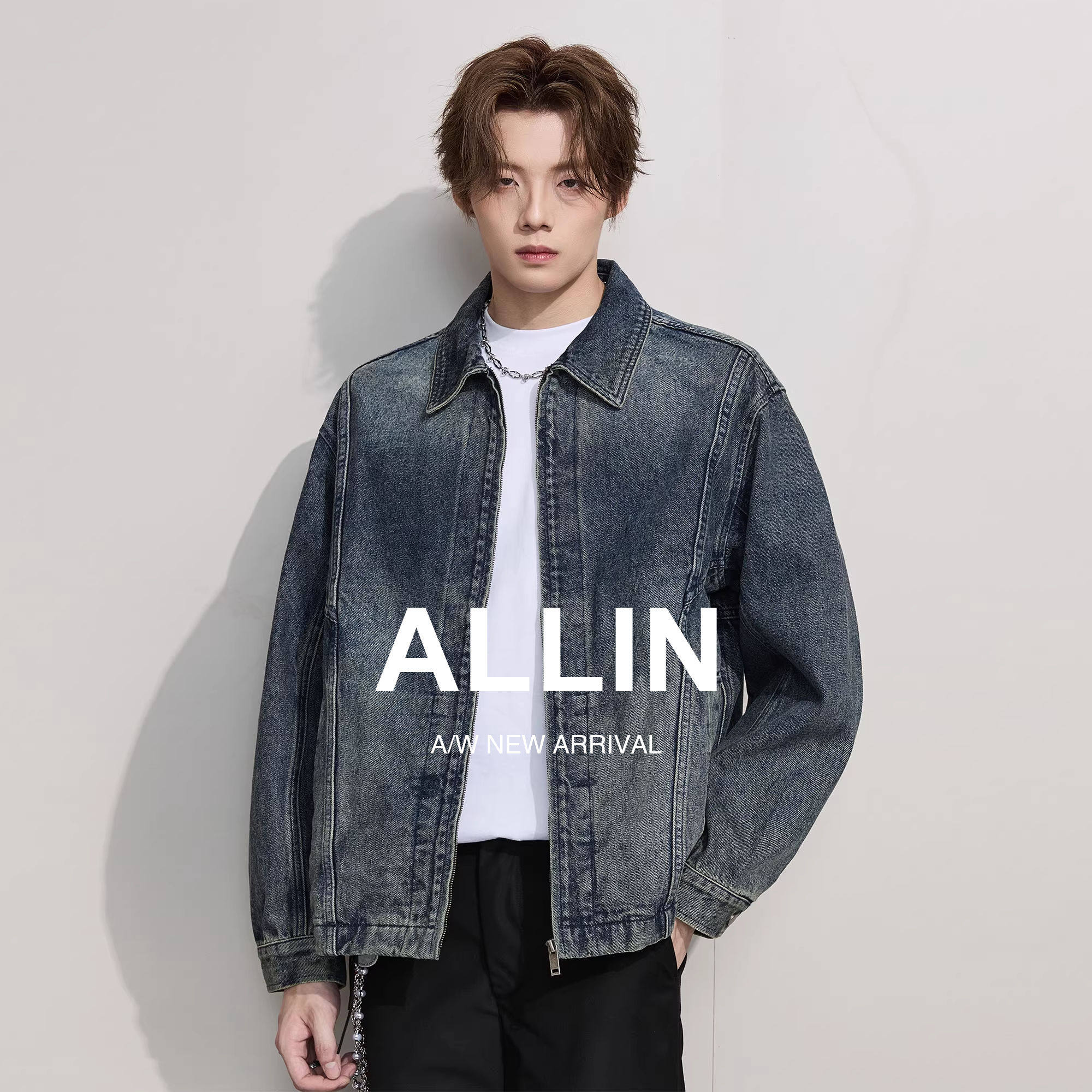 ALLIN 美式重工拼接水洗牛仔夹克男秋冬情侣宽松休闲痞帅机车外套