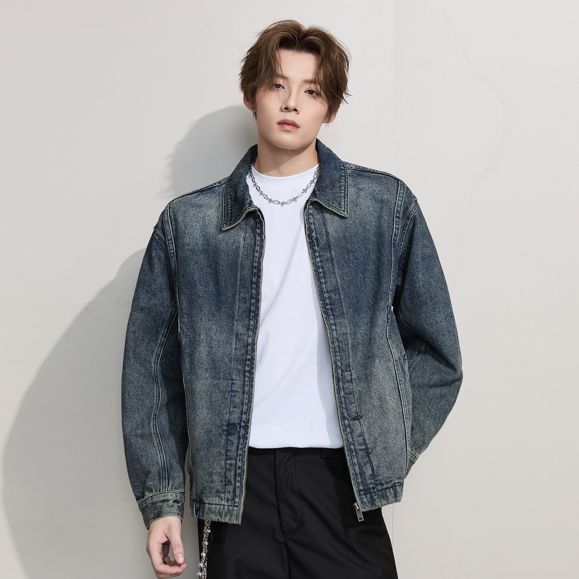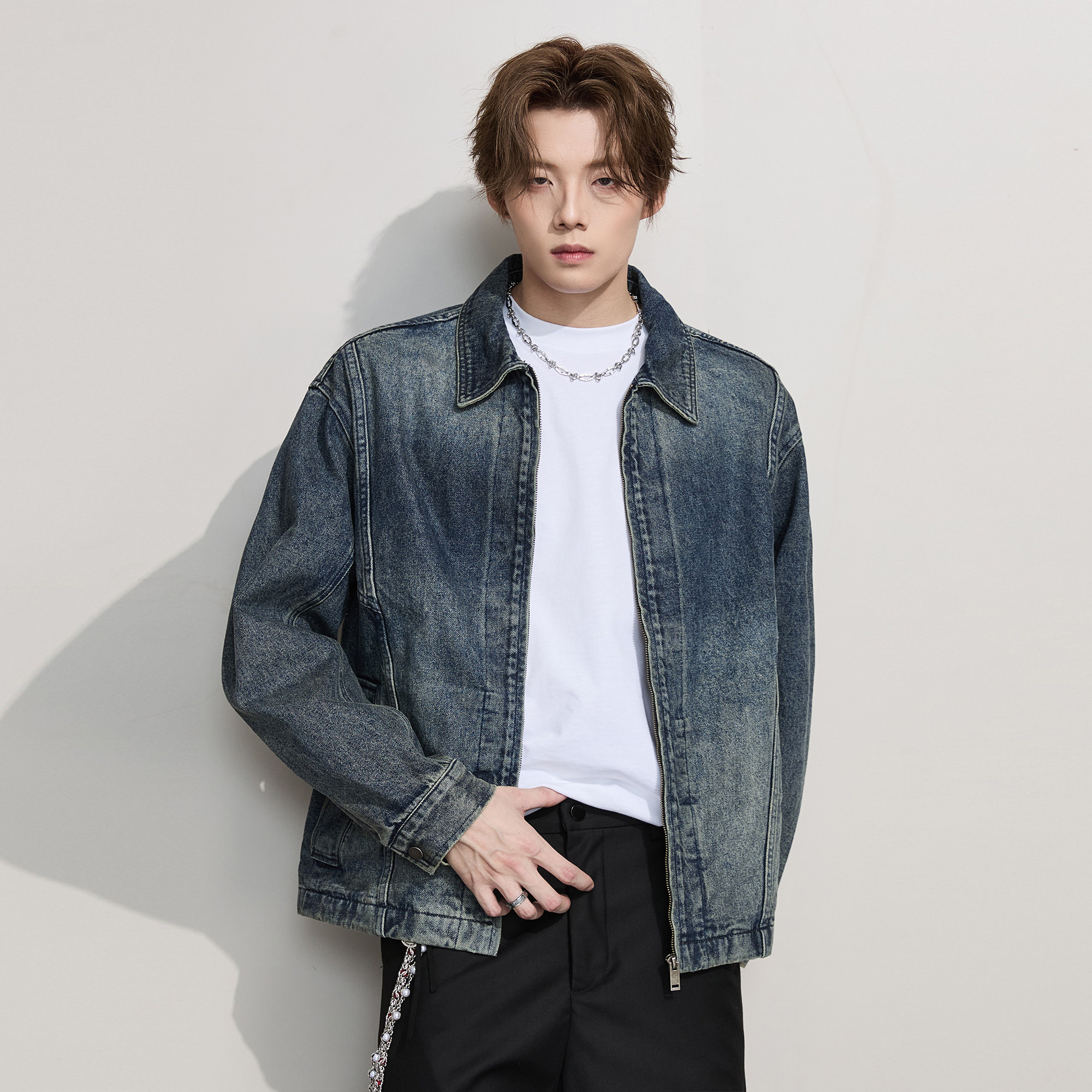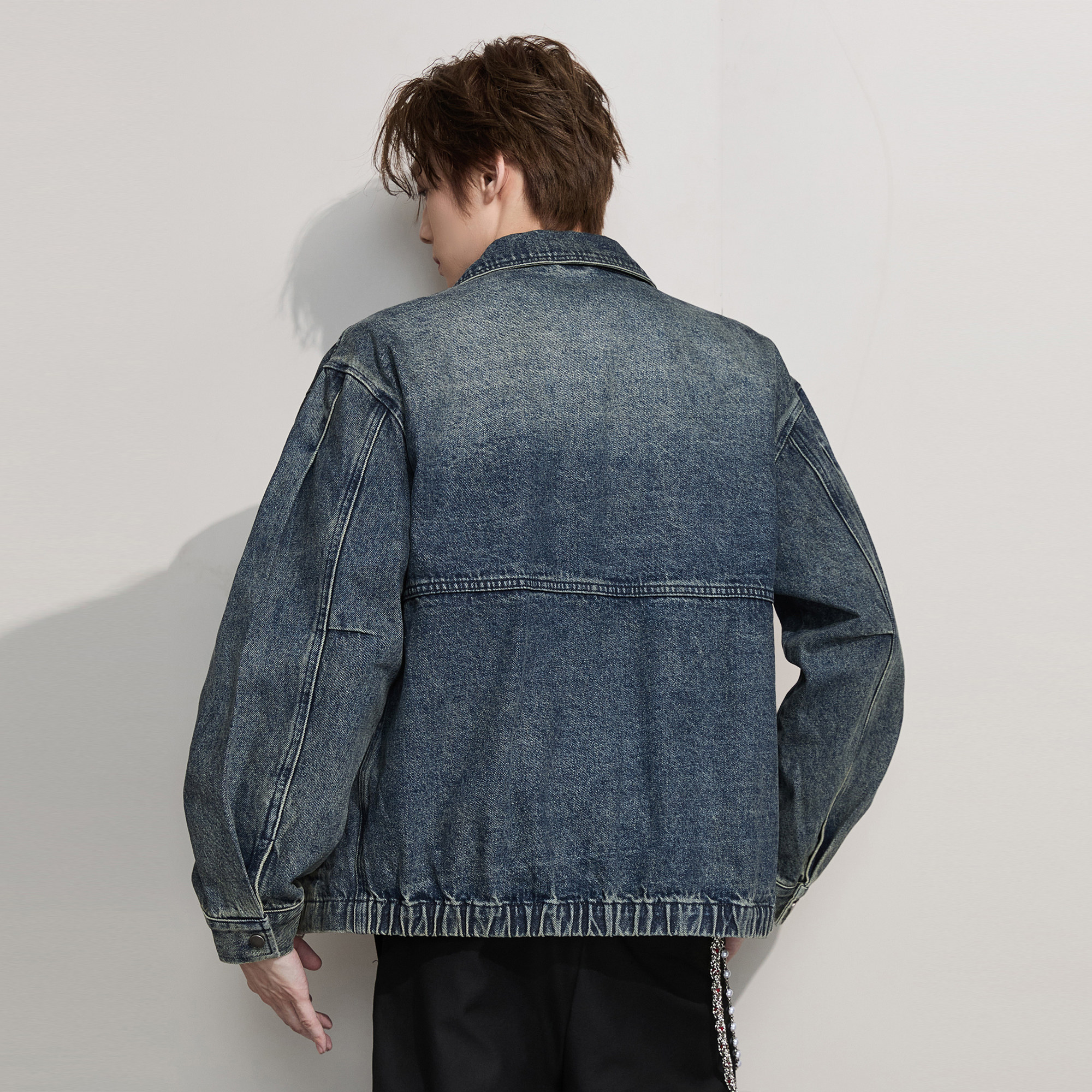 Wassup Shark美式牛仔外套男春秋季复古工装休闲夹克百搭翻领上衣
