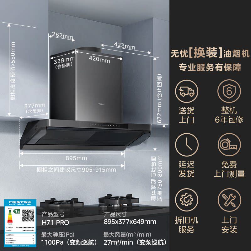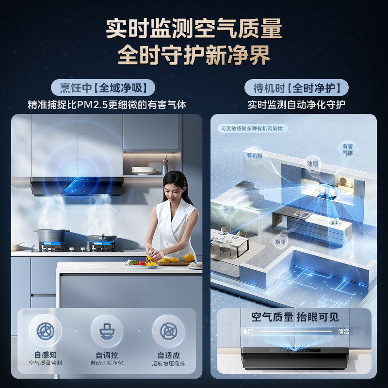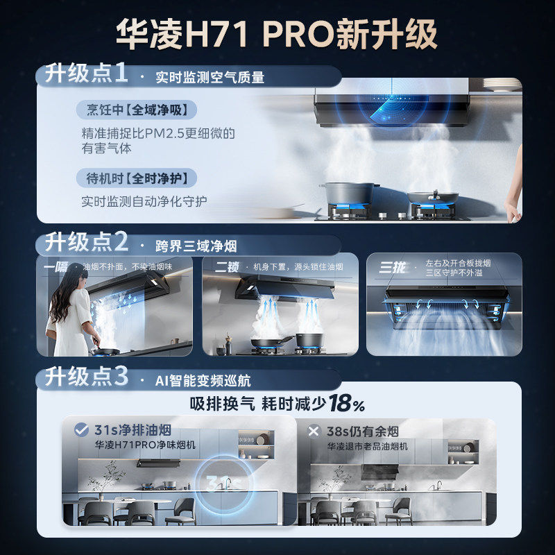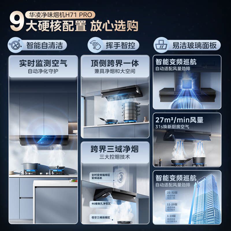 美的华凌抽油烟机厨房家用吸油机小黑翼H71大吸力顶侧一体H71PRO