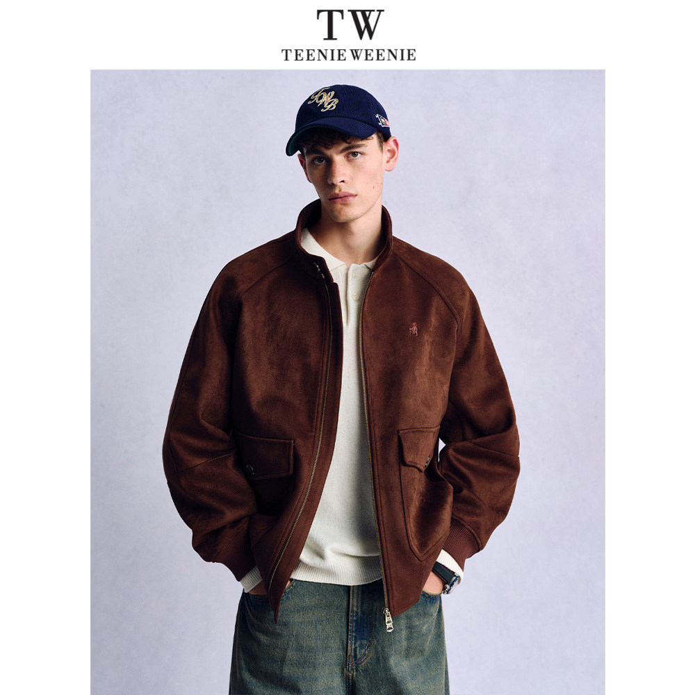 Teenie Weenie小熊男装复古工装风仿麂皮廓形骨感美拉德休闲夹克