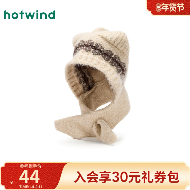 热风女士帽子2025年冬季新款提花猫耳护耳毛线帽卡通二合一围巾