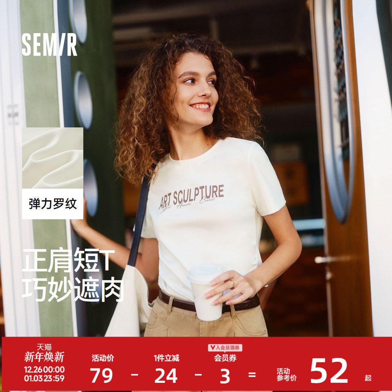 森马短袖T恤女短款修身小心机遮肉显瘦套头衫潮夏季字母正肩上衣