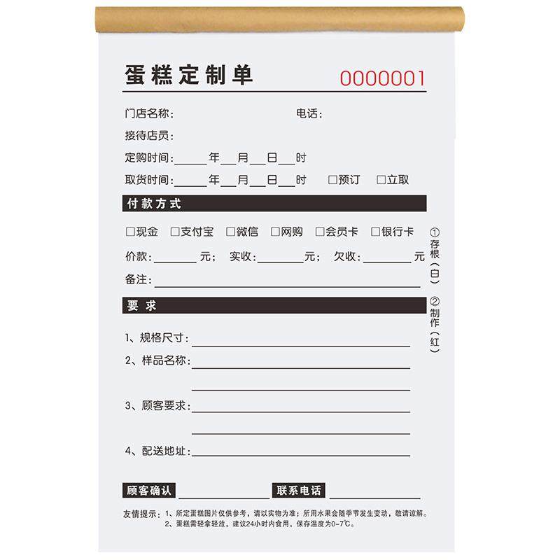 蛋糕店订单本订制花店鲜花订购单订货小票记账本二联烘焙房预订签收票据甜品单据三联收据定制生日蛋糕预定单