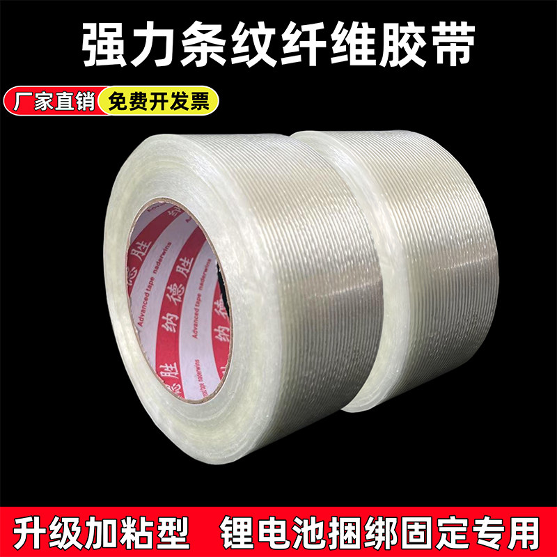 单面玻璃纤维胶带强力条纹工业用高粘度锂电池家电冰箱航模飞机模型固定重物捆扎篷布修补封箱防水防台风窗户