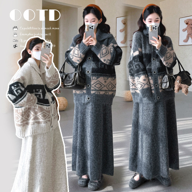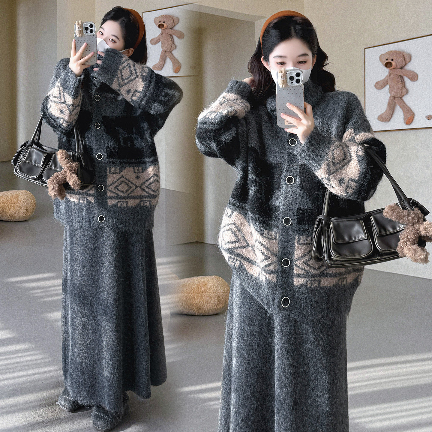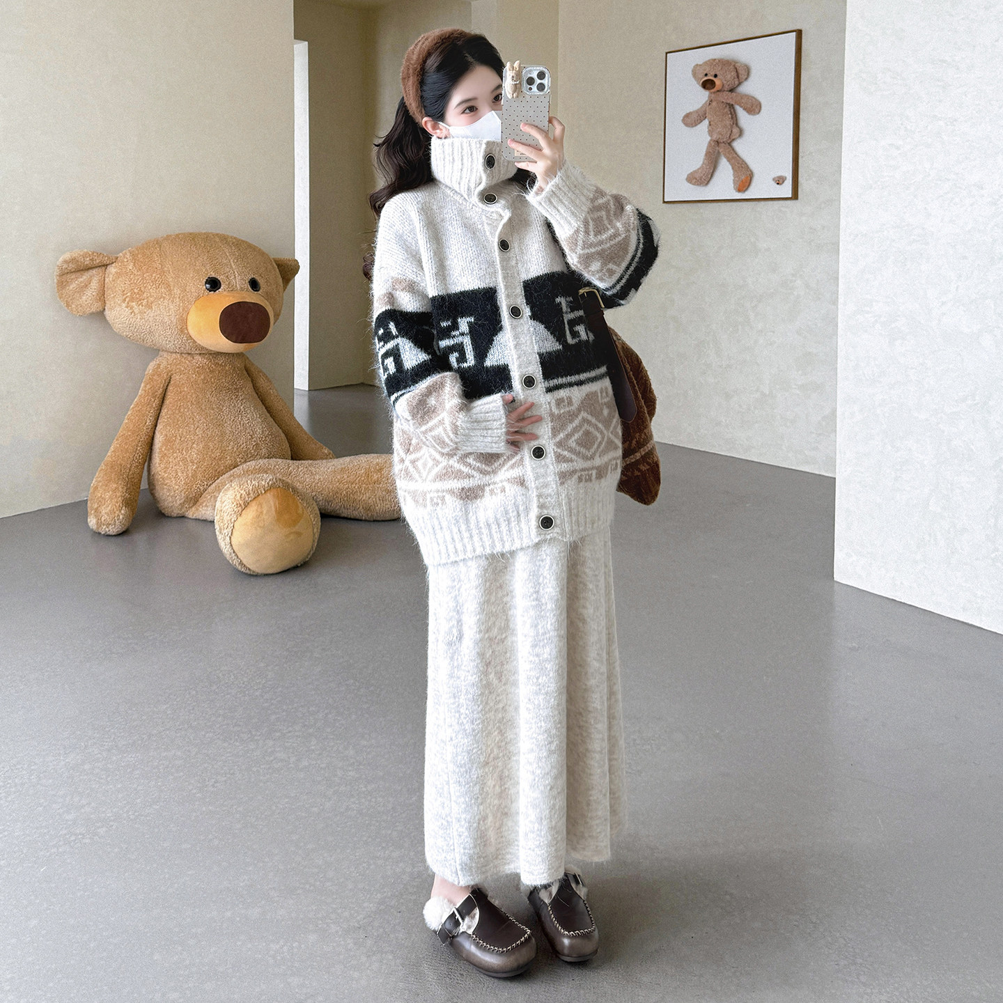 婧麒孕妇装冬装2025新款洋气毛衣外套孕期半身裙子高级孕妇套装女