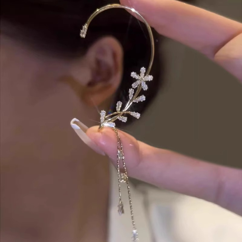 月溅星河长款垂坠感无耳洞女款耳挂耳环轻奢高级感小众方圆脸耳饰