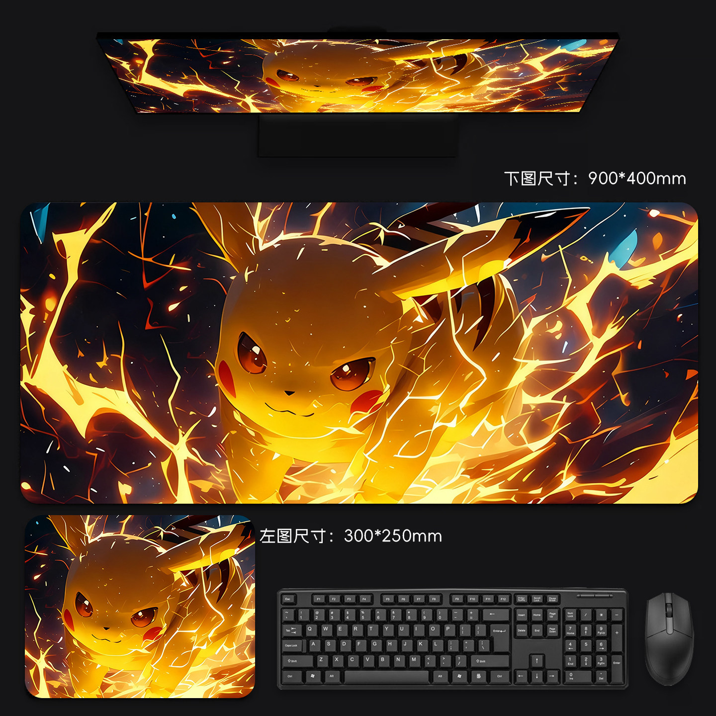 宝可梦皮卡丘鼠标垫超大加厚办公桌垫电脑键盘垫动漫电竞游戏垫