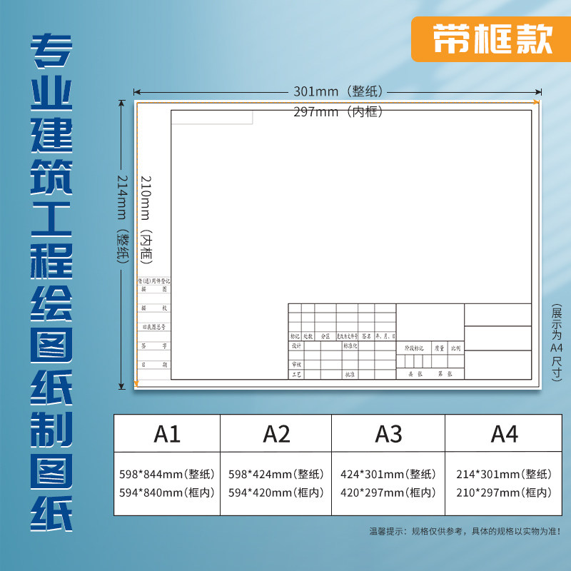 a3绘图纸a2工程制图纸a1加厚A4纸马克笔专用纸学生手抄报素描手绘画建筑设计画纸大白纸漫画机械画图纸a0