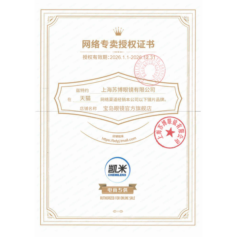 韩国凯米镜片可选1.74超薄U2/U6防蓝光1.67定制配近视眼镜片