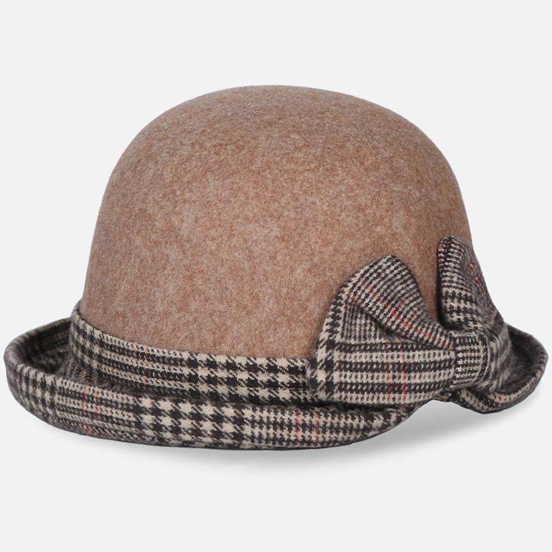女士新款帽子秋冬季时尚妈妈帽优雅毛呢卷边漂亮盆帽老人帽老年人