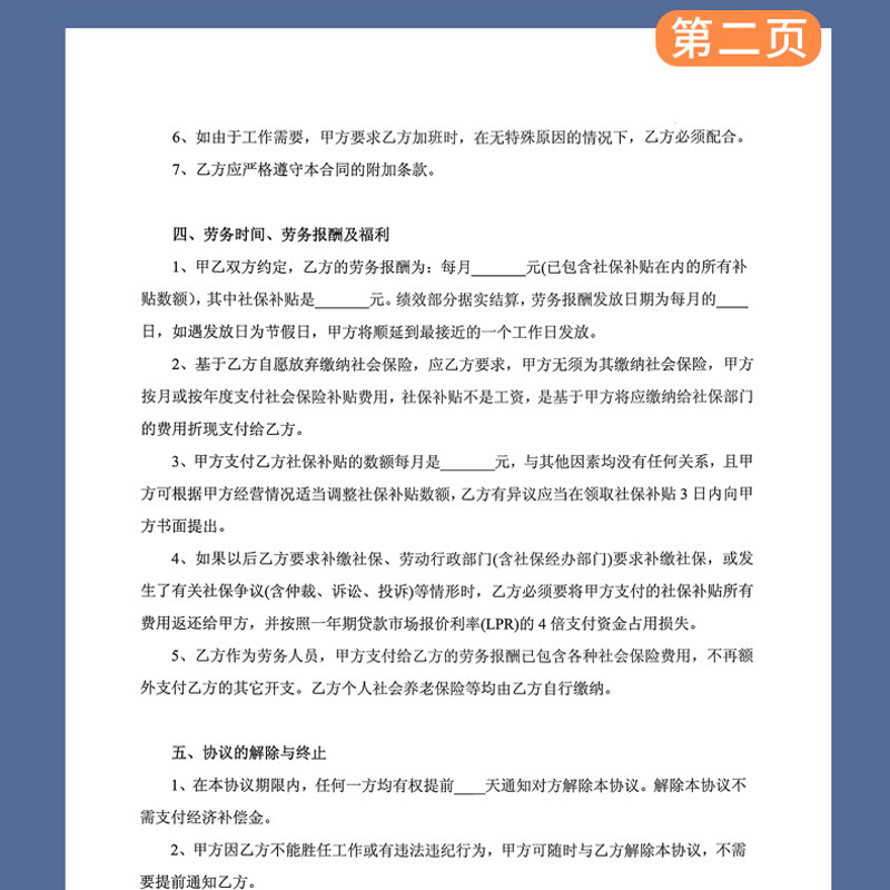 2026年新版劳动合同临时工用工派遣承包员工聘用解除应聘入职登记表职工宿舍免责书餐饮劳务合作合伙协议本