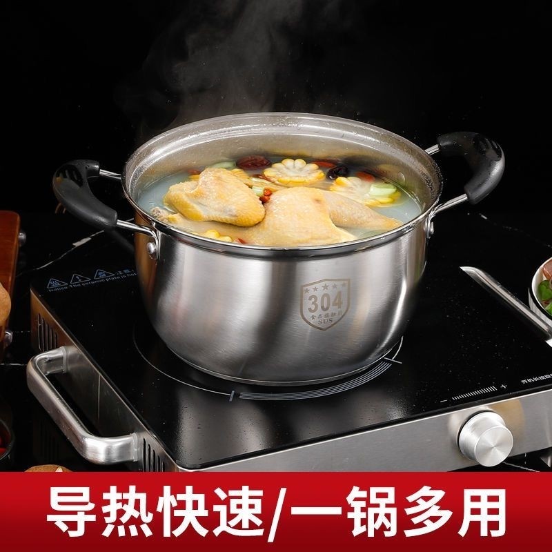 304特厚不锈钢蒸锅加厚汤锅奶锅煮粥家用煲汤电磁炉火锅燃气