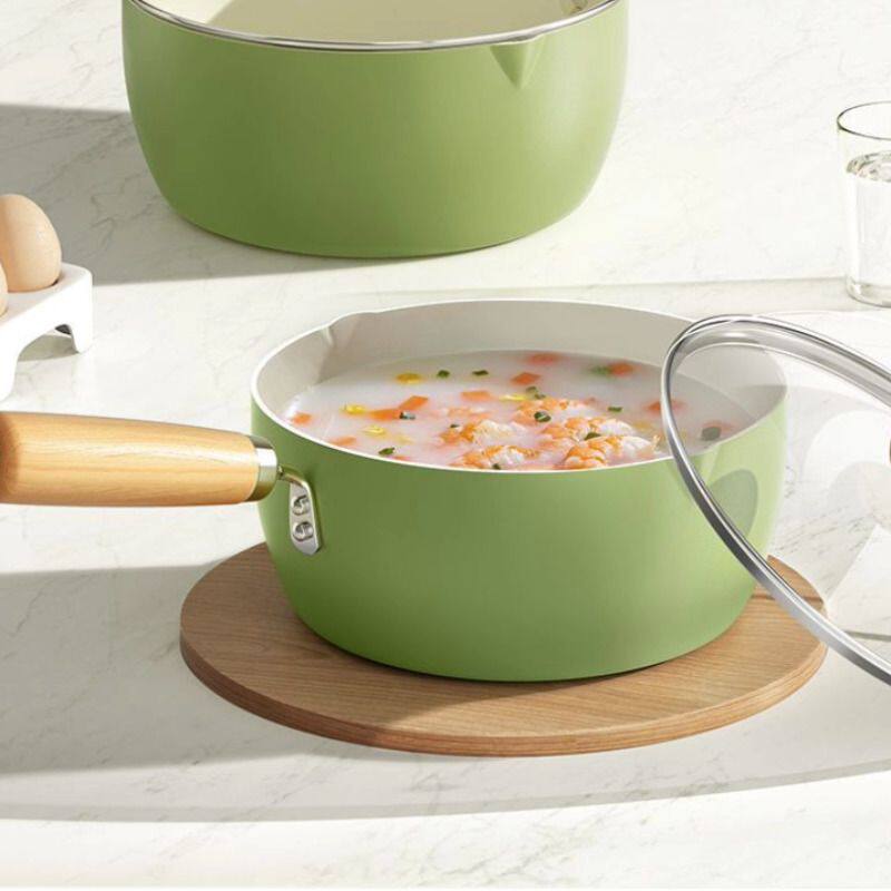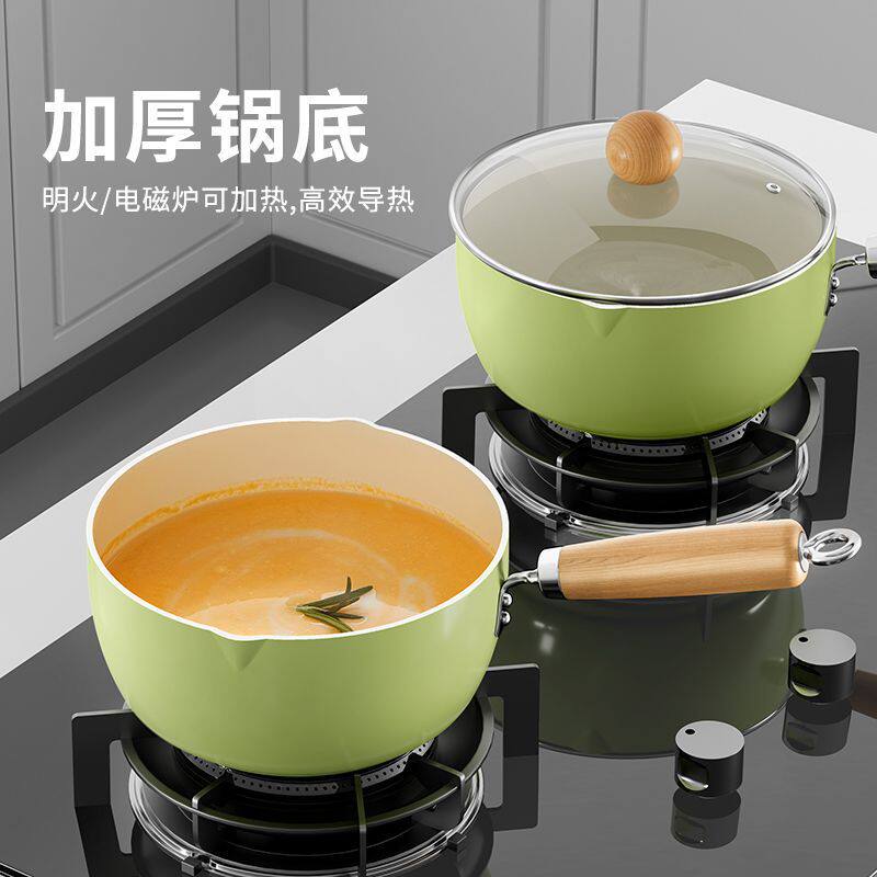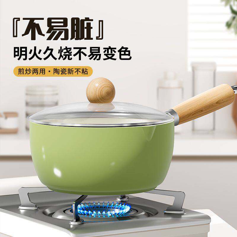 牛油果绿汤锅多规格陶瓷不粘锅耐磨蒸煮一体泡面锅防锈加厚