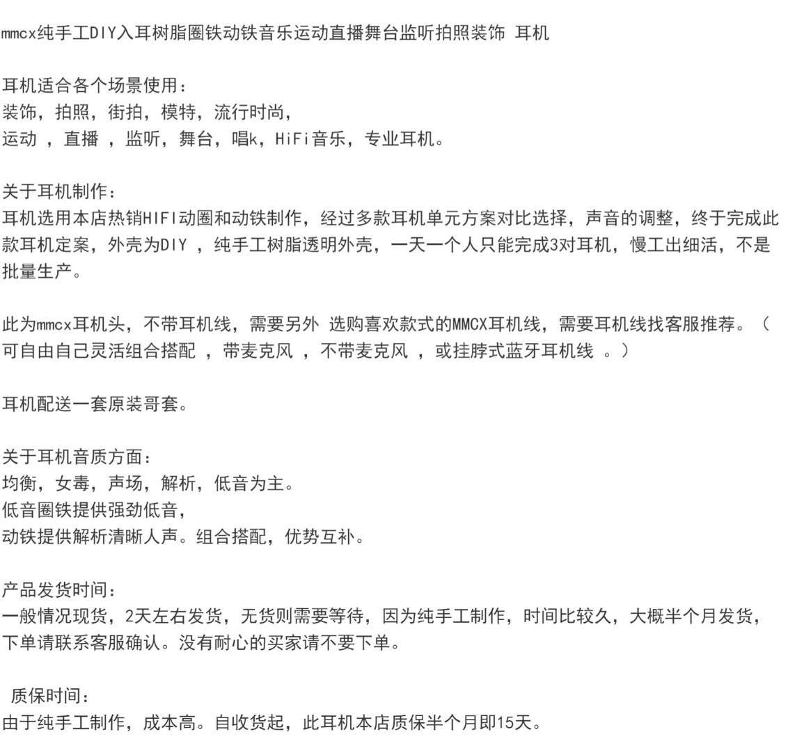 mmcx手工DIY入耳树脂圈铁动铁音乐运动直播舞台监听拍照装饰 耳机