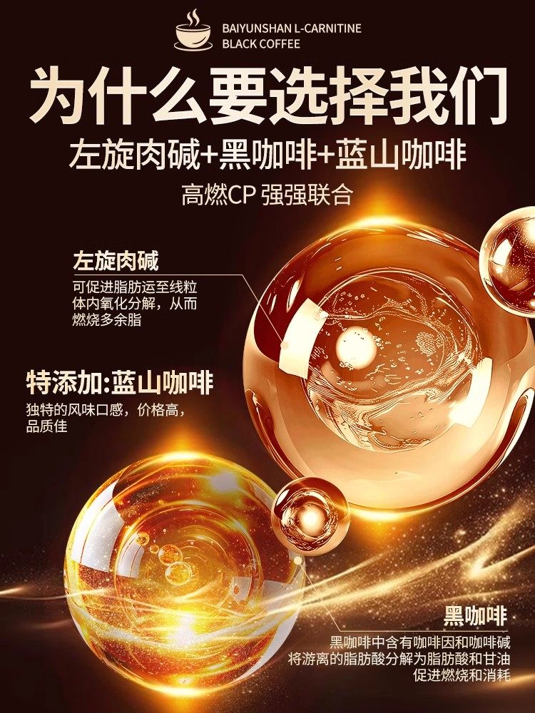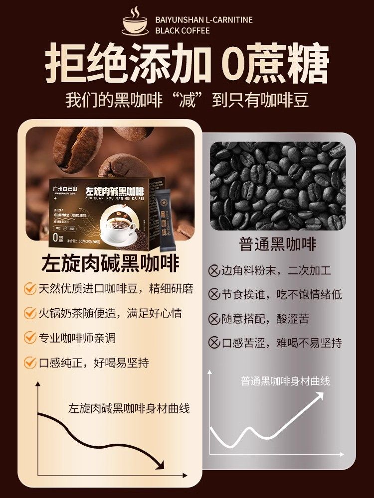 白芸豆黑咖啡无0脂0减燃肥脂左旋肉碱咖啡粉正品旗舰店固体超模