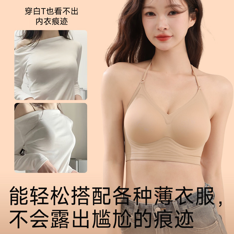 无痕美背抹胸内衣女小胸聚拢可外漏细肩带一体固定杯背心式文胸罩