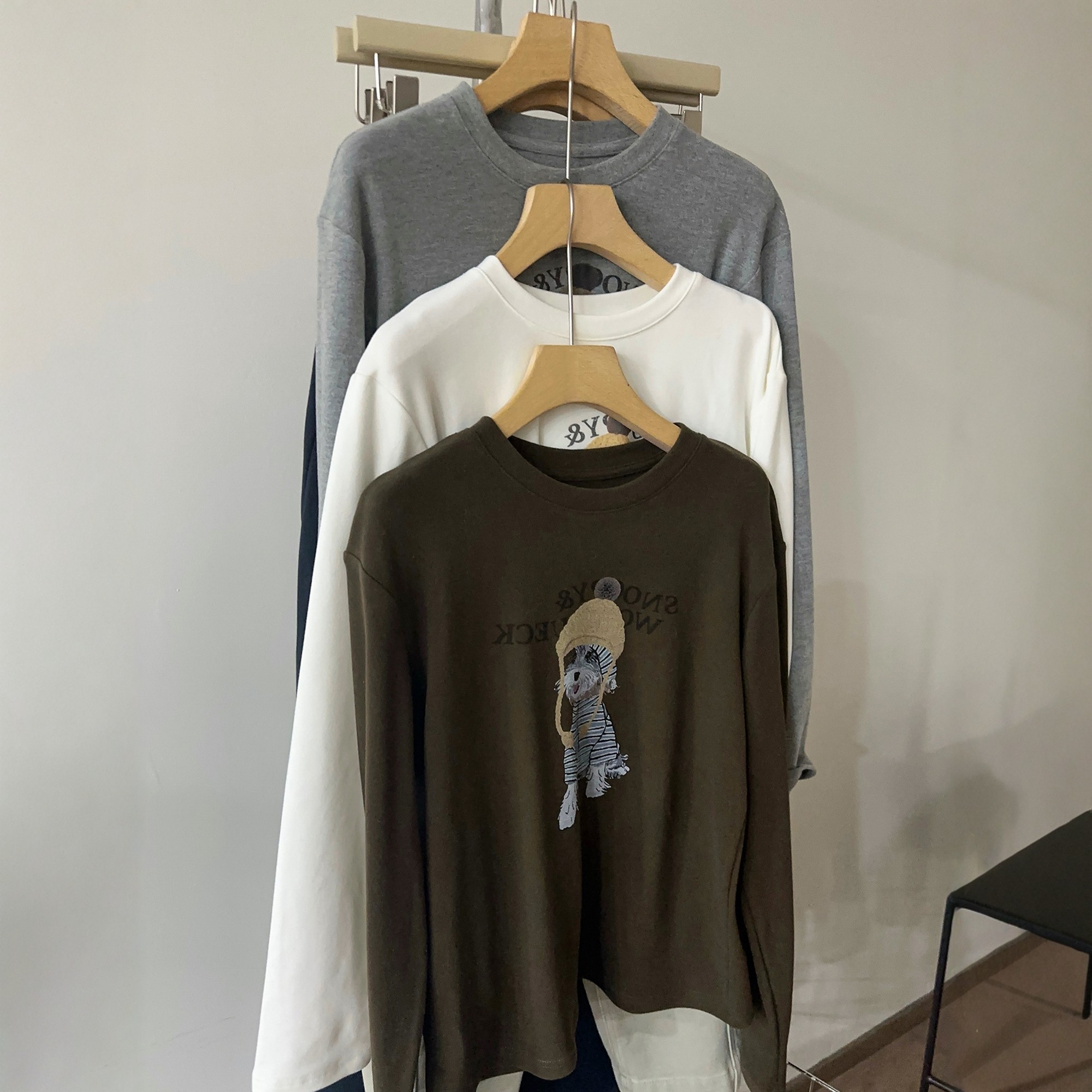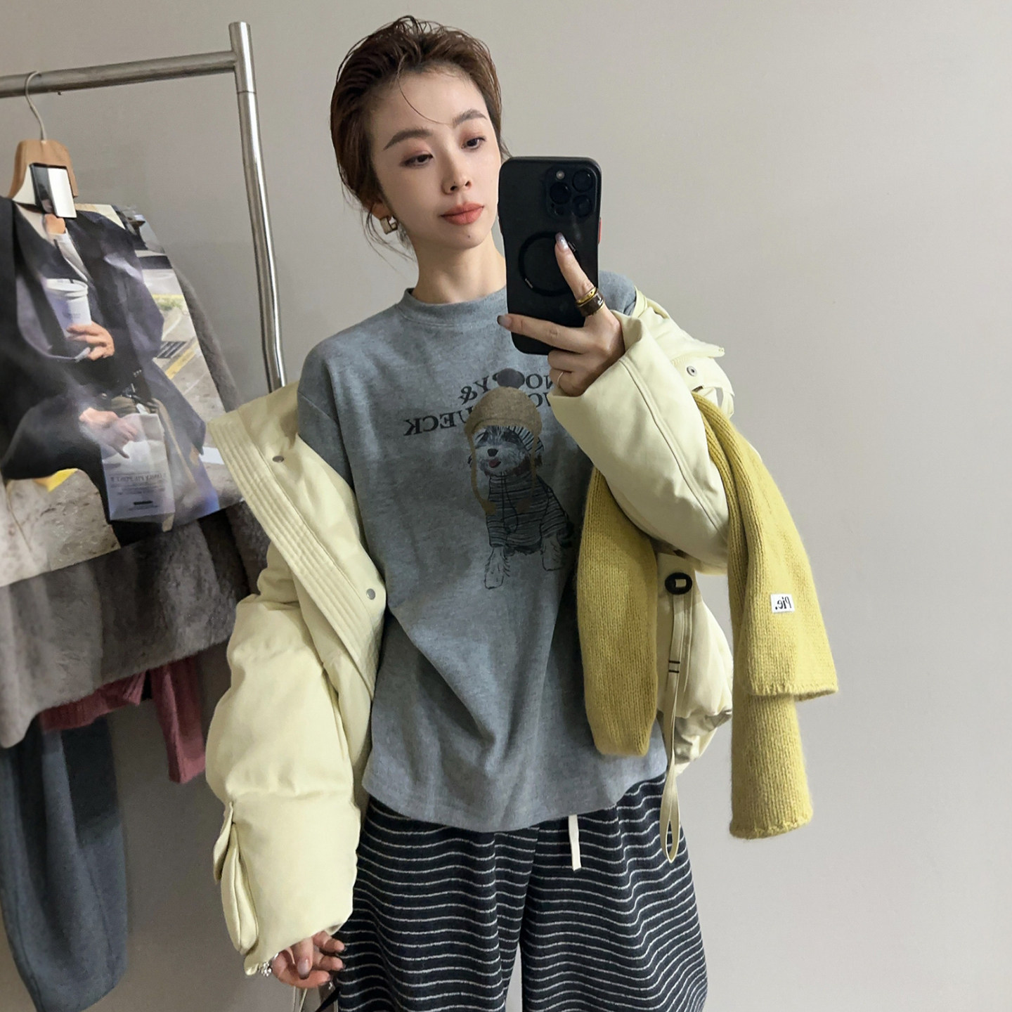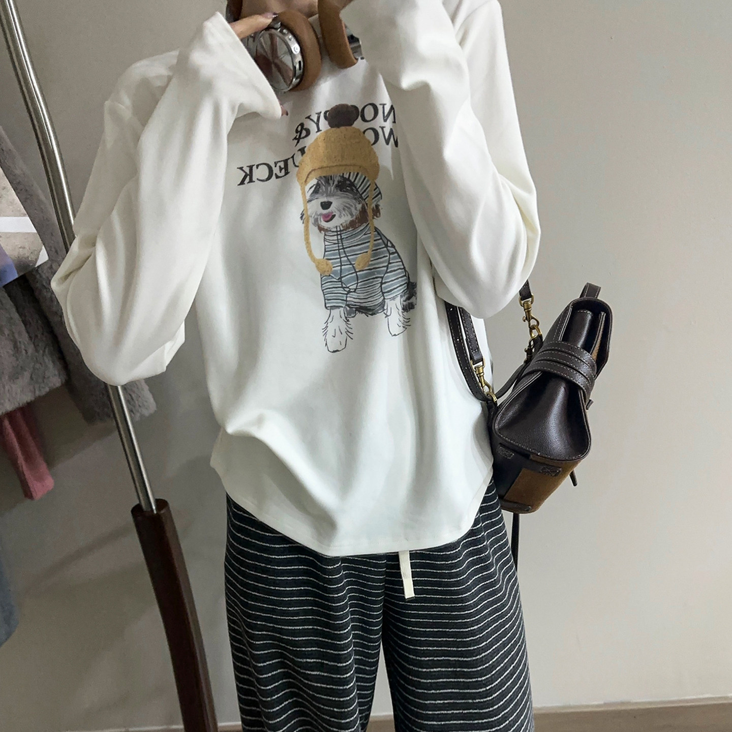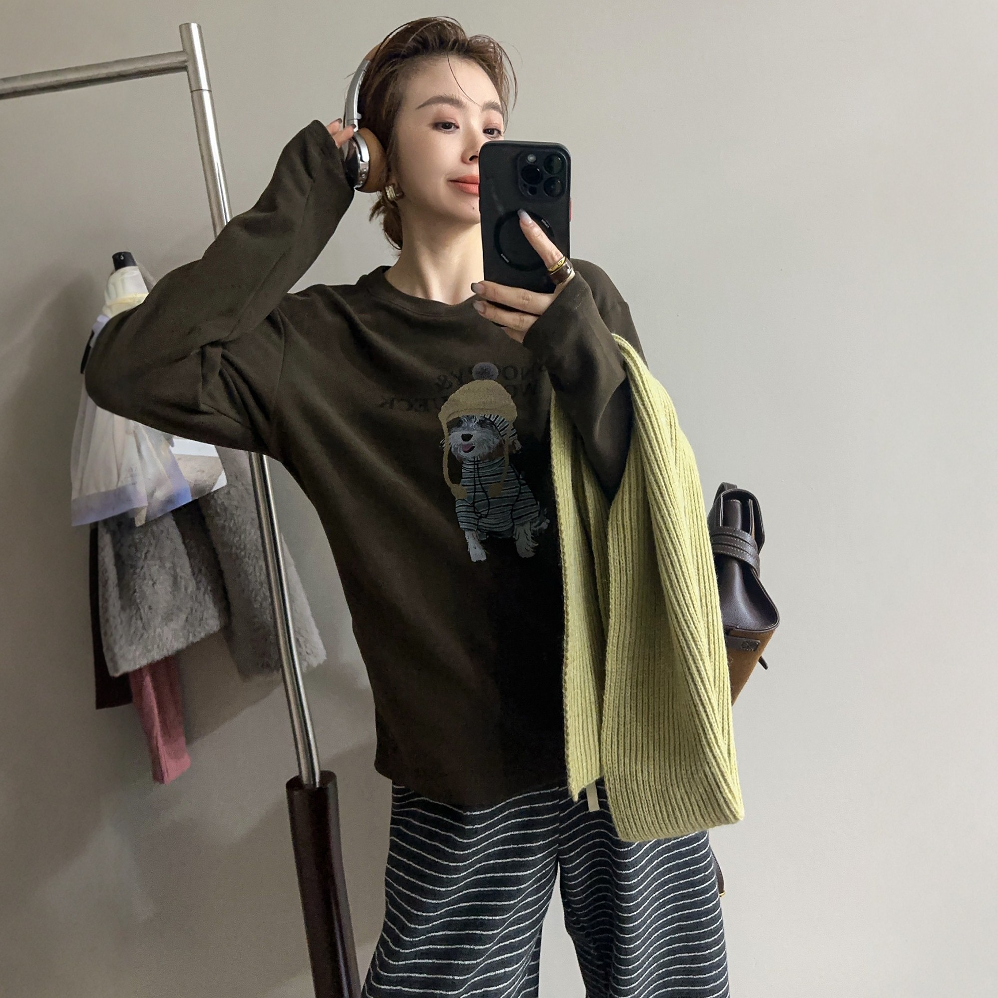 小狗印花磨毛加厚加绒T恤女欧洲站2025冬装新款欧货女装打底衫潮