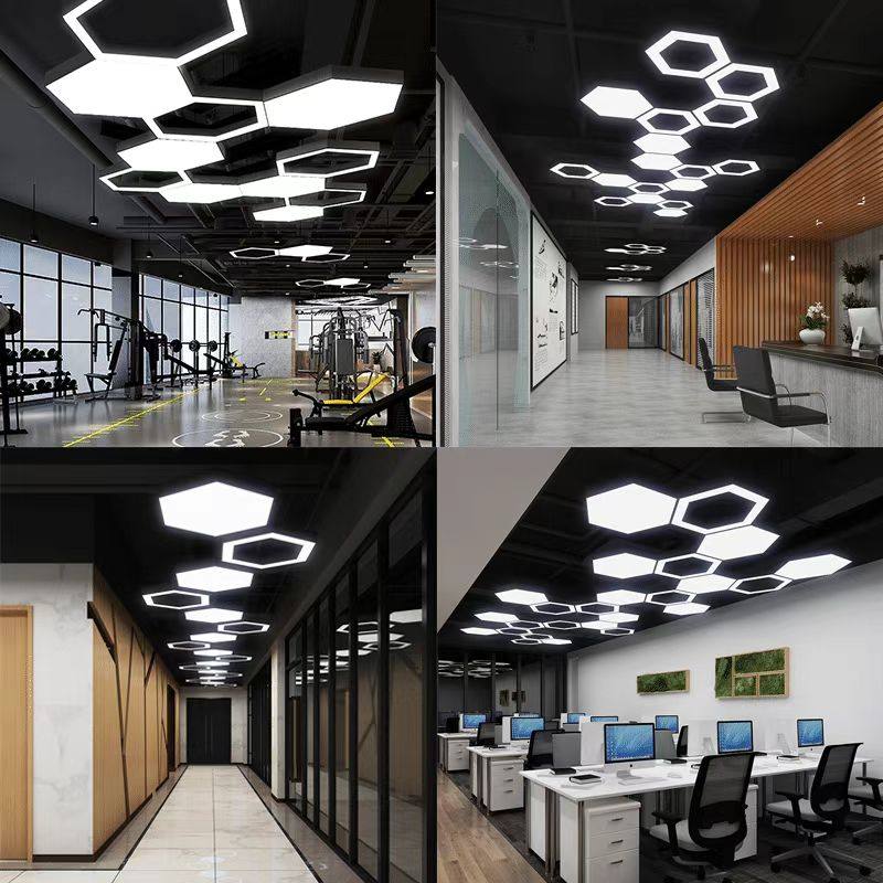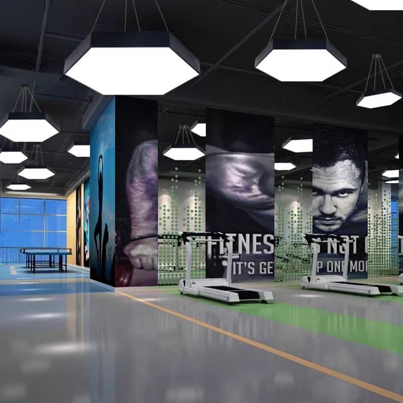 办公室吊灯商用健身房造型灯六边形LED圆环形灯棋牌室餐厅异形灯