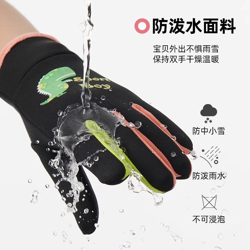 加绒保暖手套儿童秋冬季小学生男童女孩加厚骑车夜光防水可爱户外