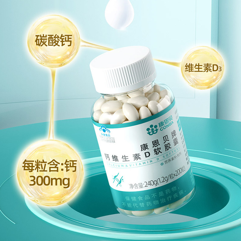 康恩贝钙维生素D软胶囊钙D液体钙中老年补钙碳酸钙成人正品男女D3