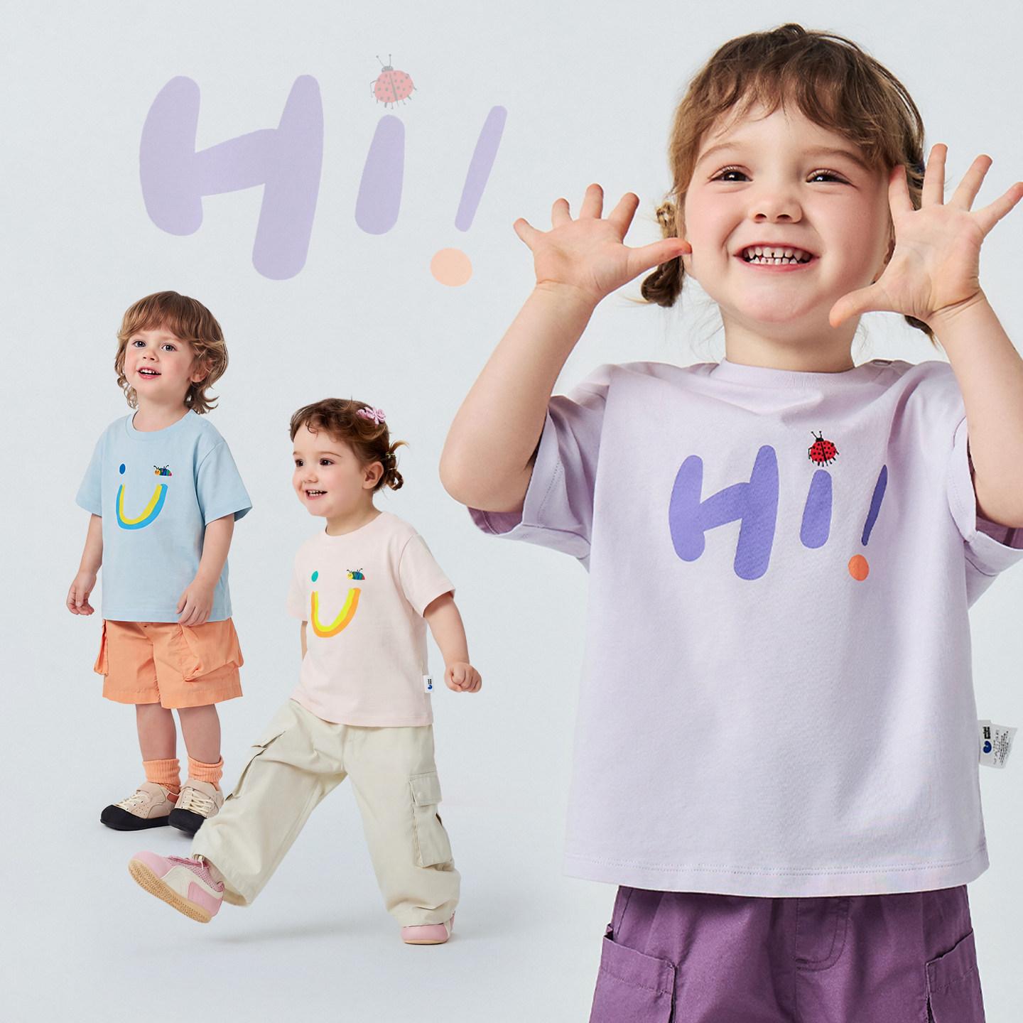 [纯棉]迷你巴拉巴拉儿童短袖T恤多巴胺可爱字母宝宝上衣2026夏装