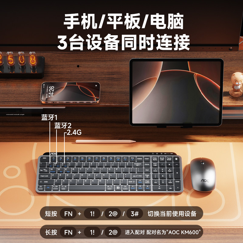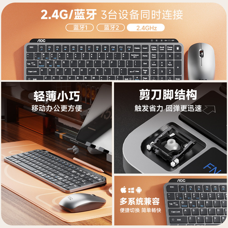 AOC无线蓝牙键盘鼠标双模键鼠套装剪刀脚mac笔记本电脑苹果KM600B
