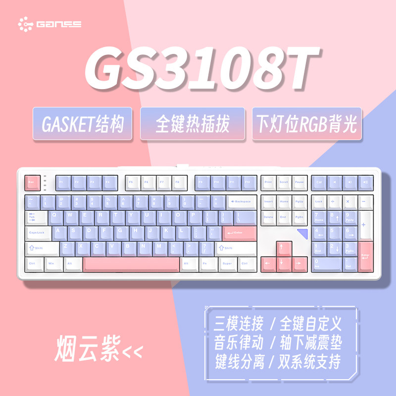 GANSS高斯3108T键机械键盘无线键盘游戏有线无线三模键盘办公