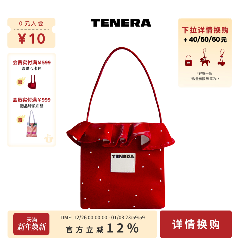 TENERA限定丝绒花朵小方包包女式2025新款红色手拎小包