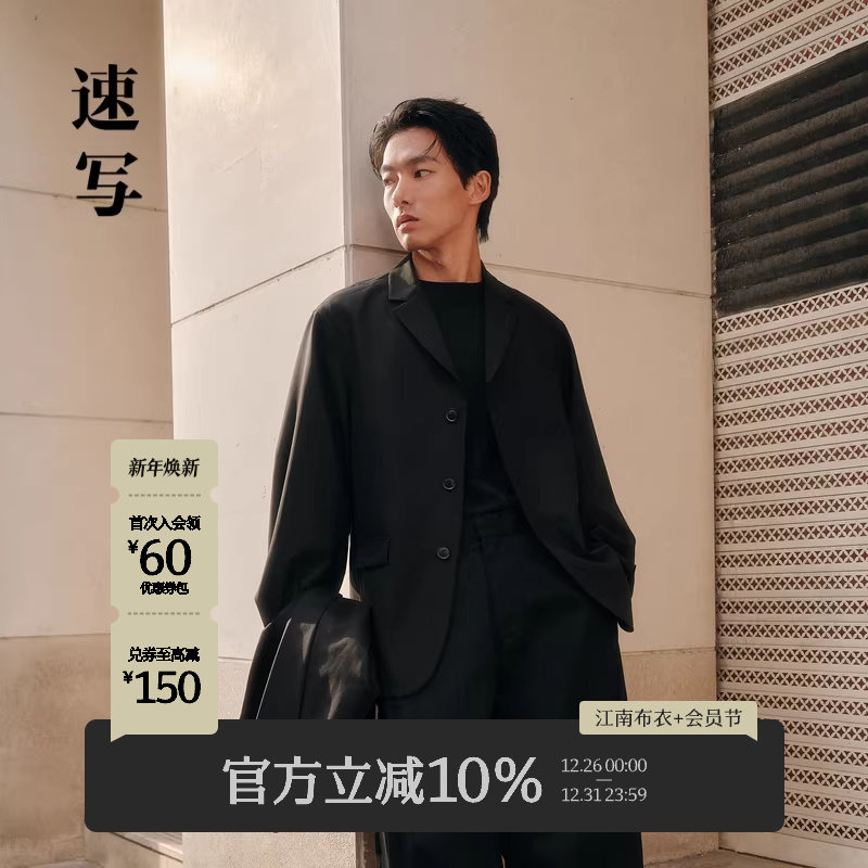速写男装秋冬新款休闲宽松西装外套简约设计优雅西服时尚潮流外套