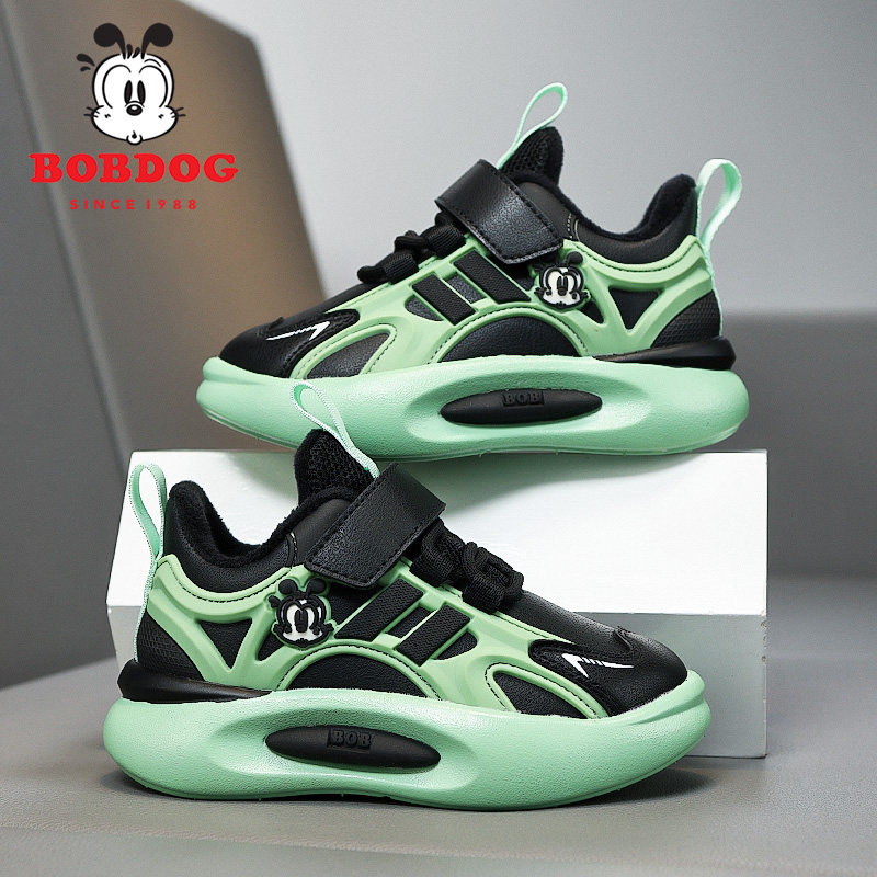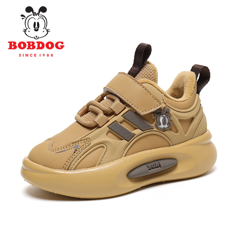 巴布豆男童运动鞋加绒二棉皮面2025秋冬新款时尚轻便软底儿童鞋子
