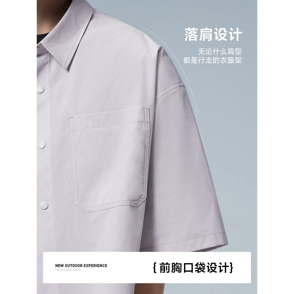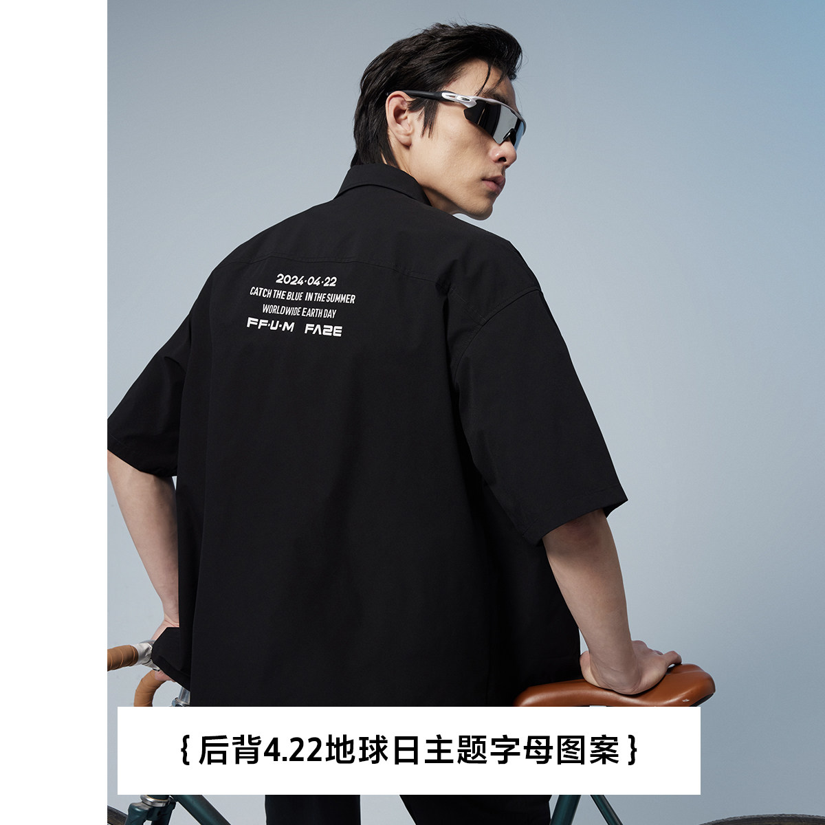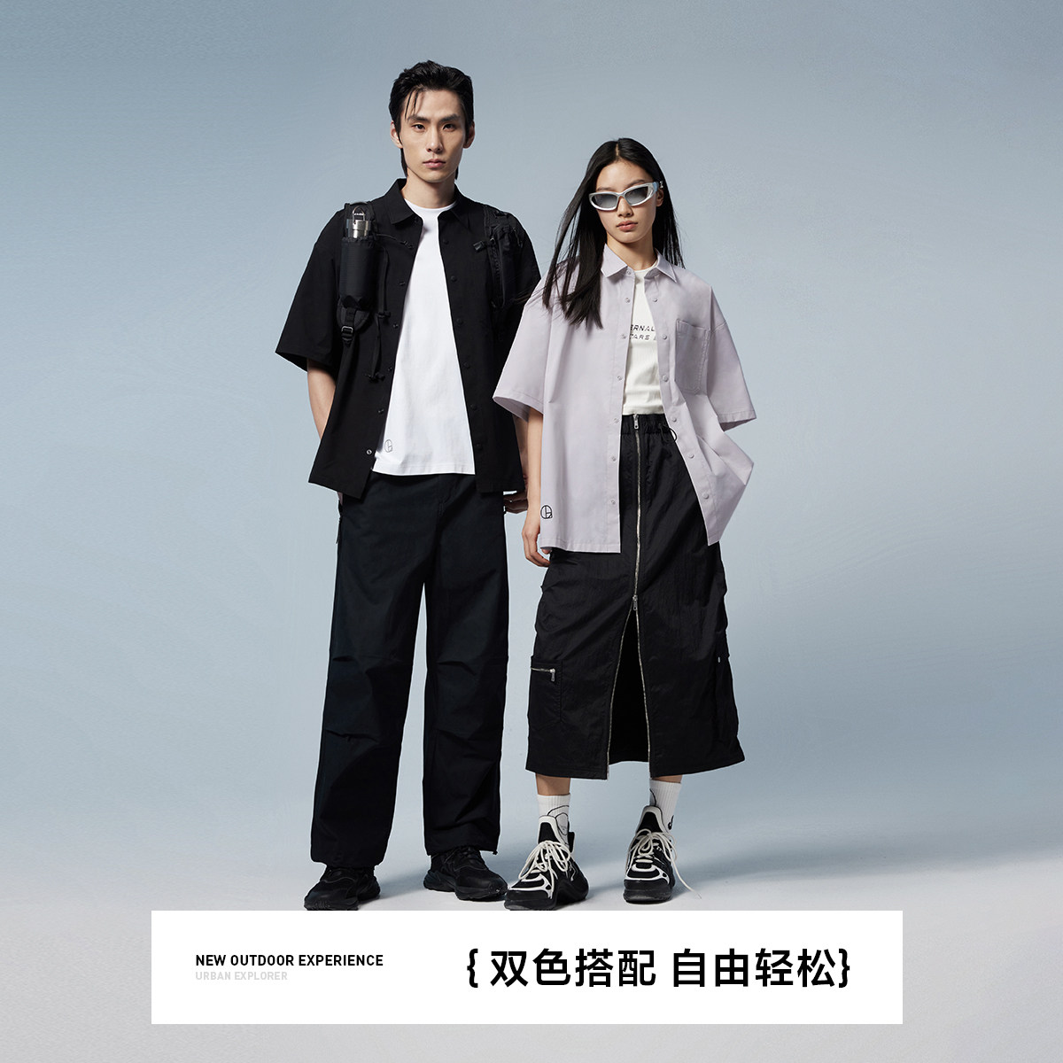 杰克琼斯夏季新款休闲户外工装风情侣款衬衣字母短袖衬衫男装