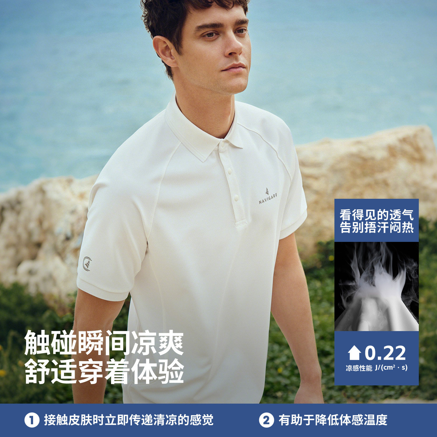 [凉感]Navigare意大利小帆船速干POLO衫男短袖2026夏季翻领T恤衫