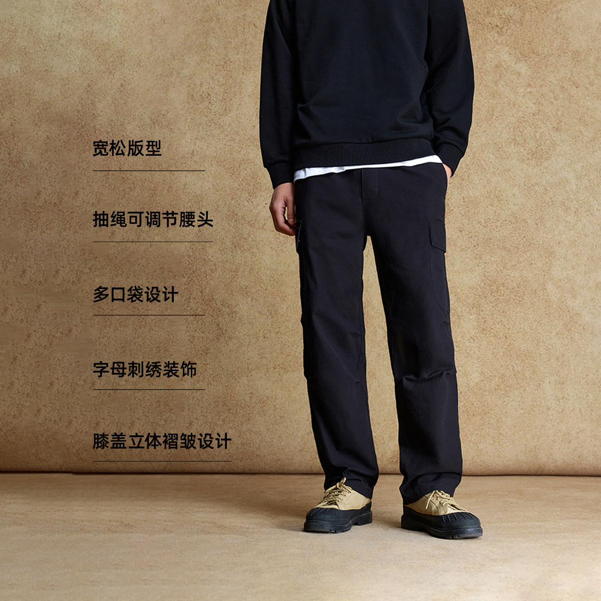 略宽松版 抽绳腰头 多口袋设计 字母刺绣