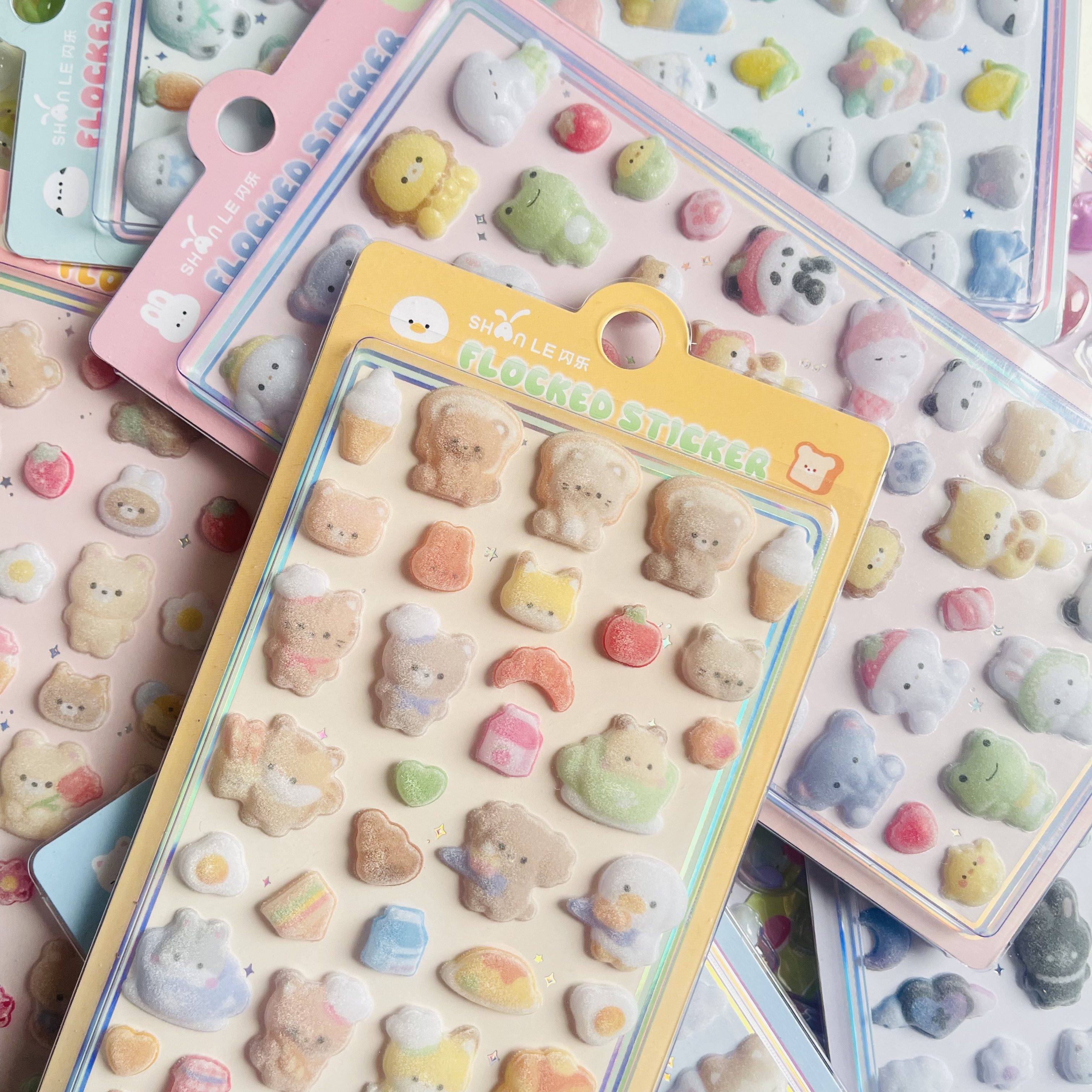 闪乐植绒贴3D浮雕贴纸水滴贴画环氧树脂滴胶立体痛本素材BON BON