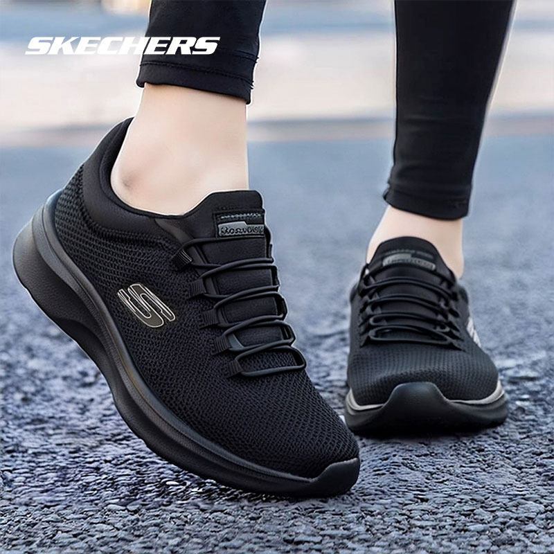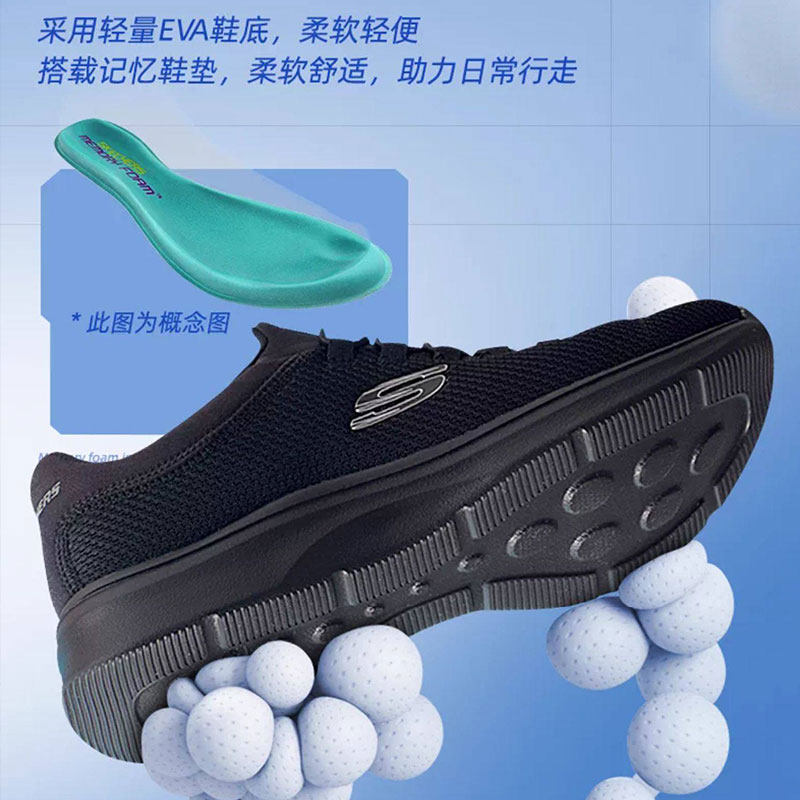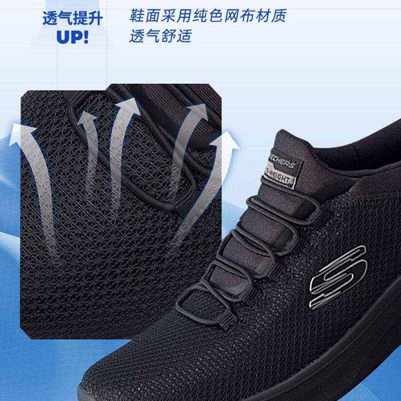 斯凯奇女鞋2026新款一脚蹬穿脱黑色网面妈妈跑步鞋轻便软底运动鞋
