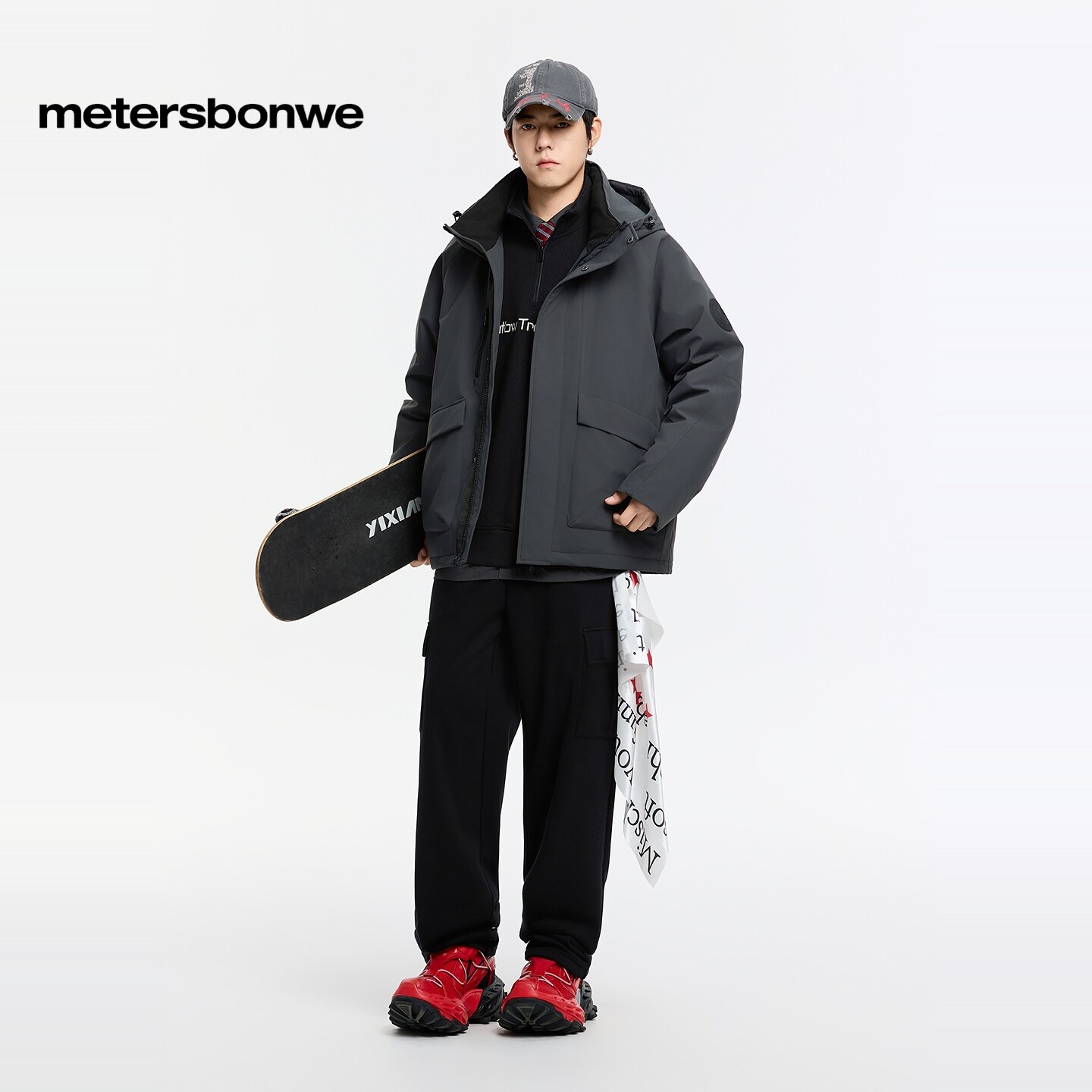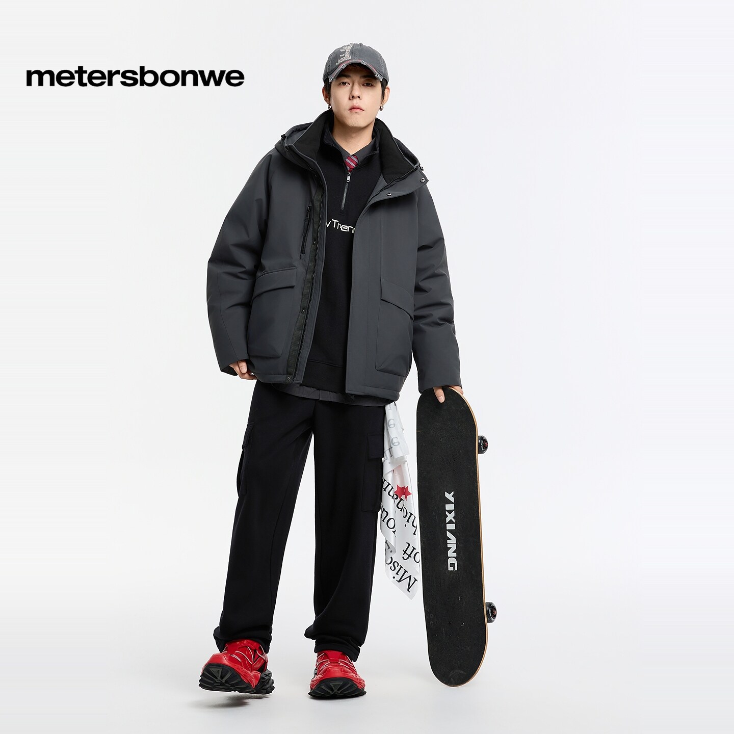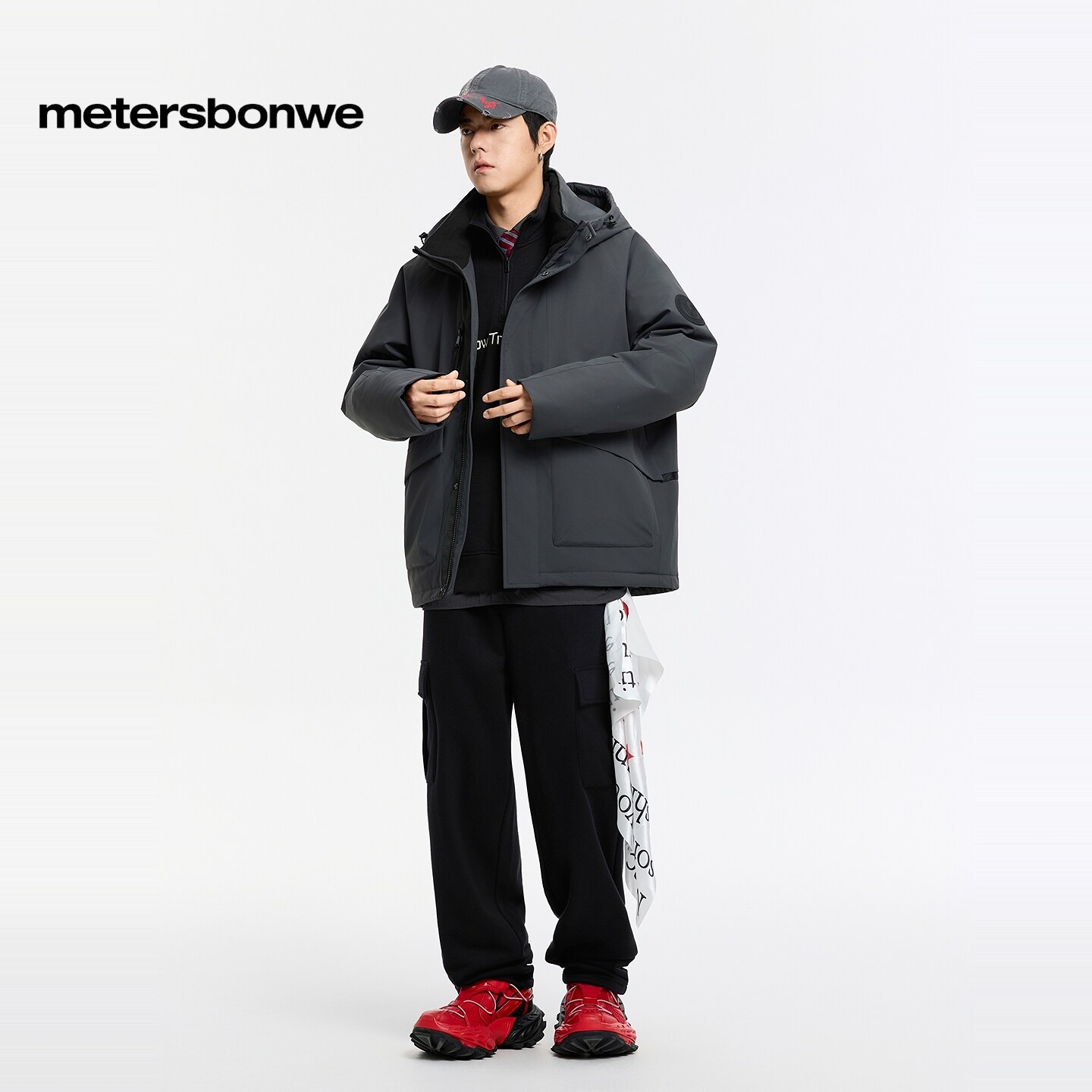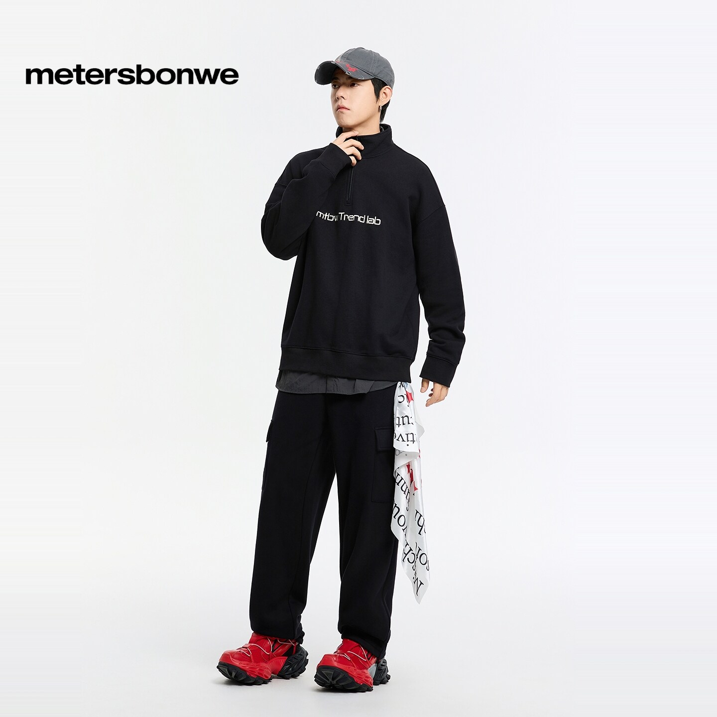 美特斯邦威工装裤男春季新款时尚潮流流行宽松直筒立体休闲针织裤