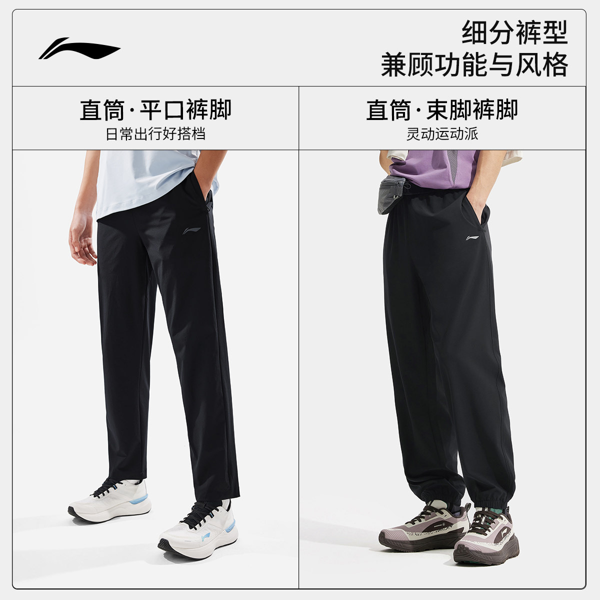 李宁速干裤男士通勤训练跑步裤休闲透气黑色裤子男款直筒运动长裤