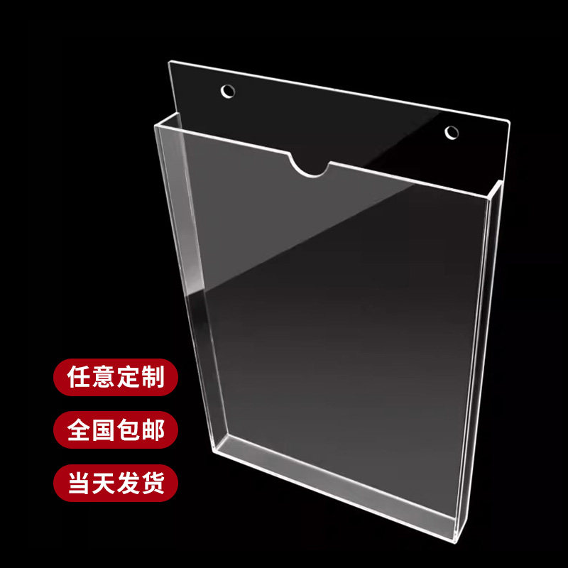 双层亚克力A4文件盒资料卡槽加厚有机玻璃透明展示盒插纸杂志收纳盒悬挂上墙定制