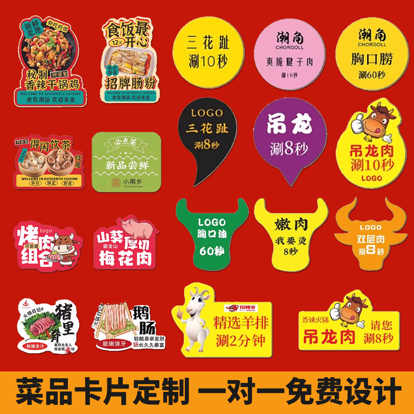 餐饮卡片火锅食材标签设计防水PVC卡定制创意菜牌涮菜计时提示牌