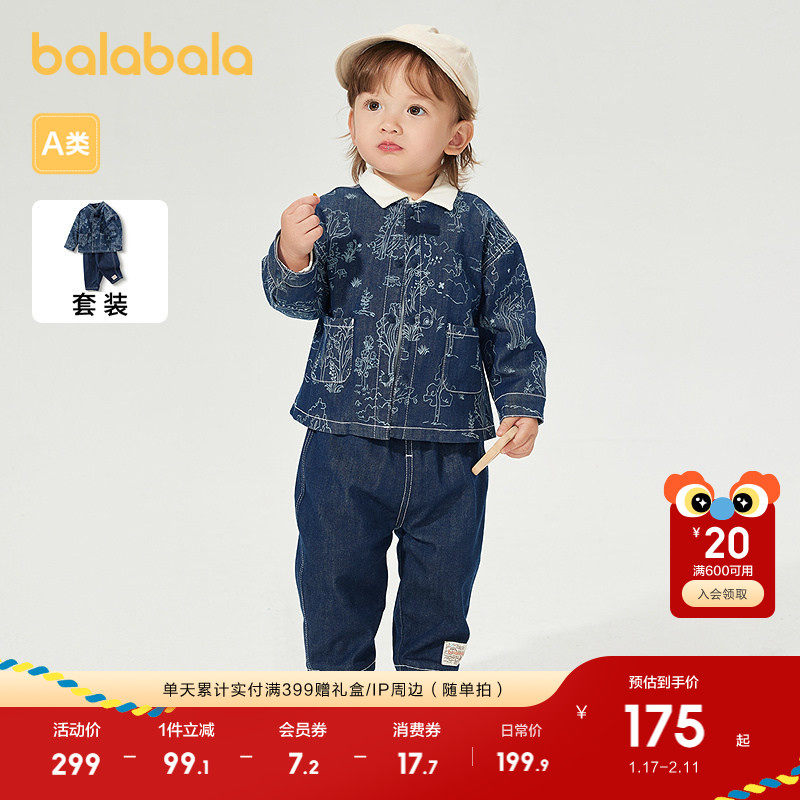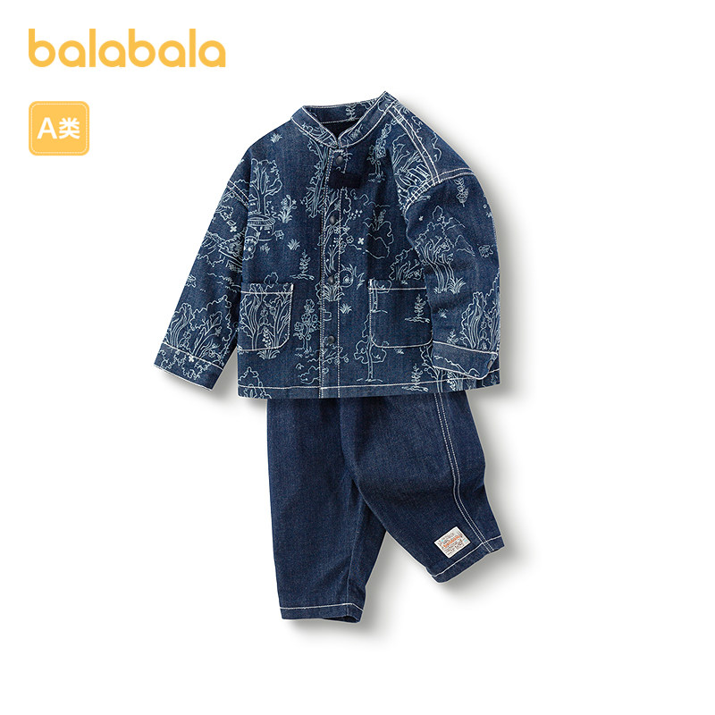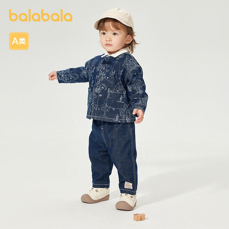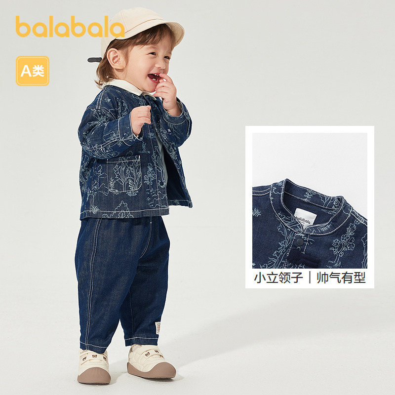 巴拉巴拉童装宝宝长袖套装婴儿男童牛仔服两件套小立领国风复古潮