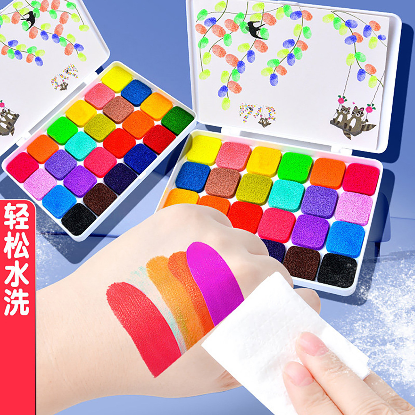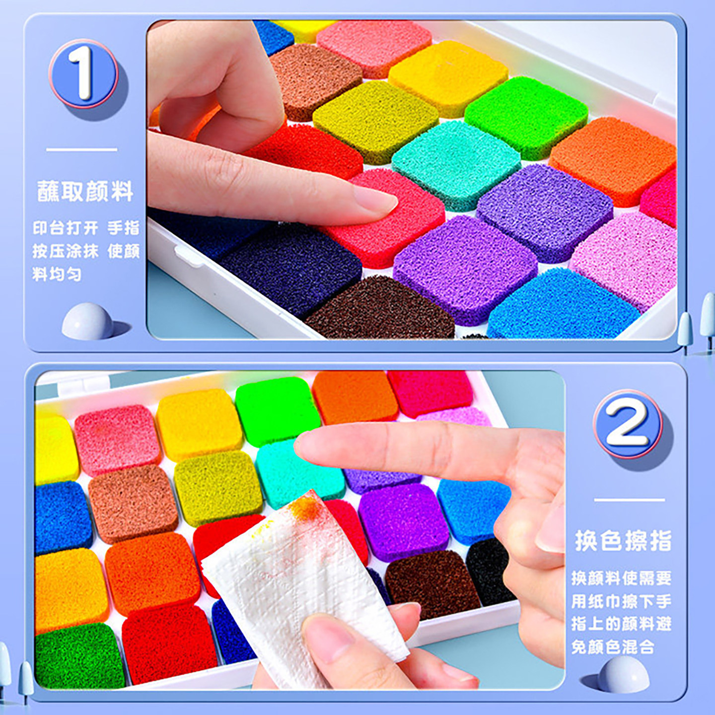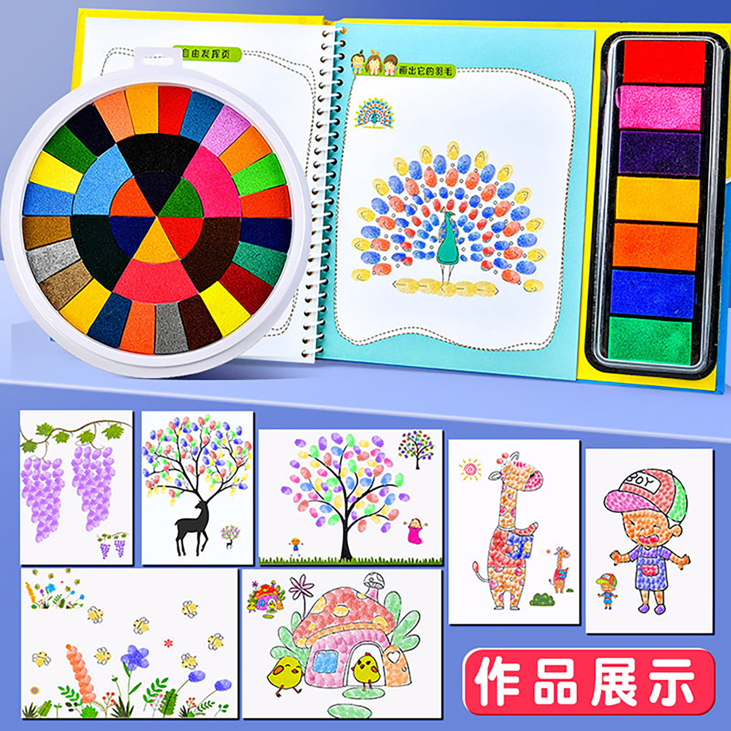 儿童手指画印泥彩色印泥印台手掌手指印泥盘幼儿园手指画印颜料绘画涂鸦可水洗玩具小学生绘画工具印尼