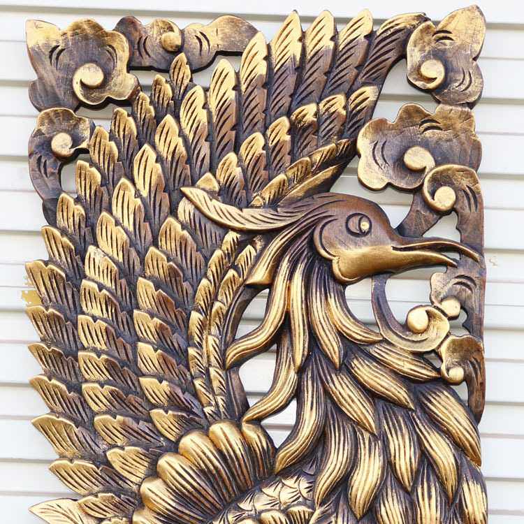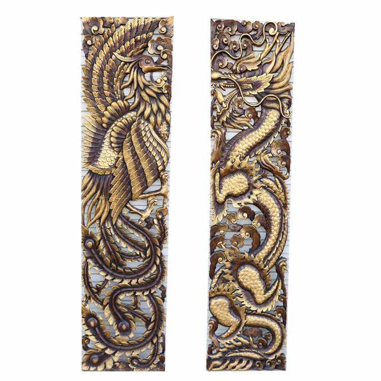 泰国进口木雕工艺品 龙凤呈祥雕花板电视背景墙饰装饰壁饰