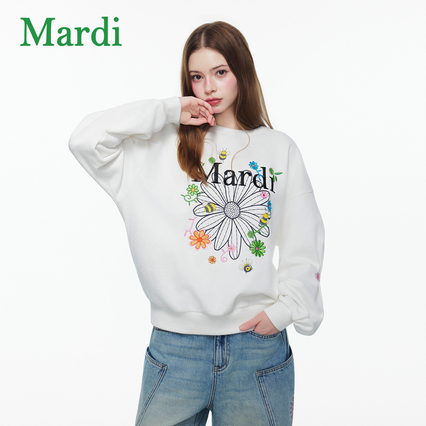 MARDI小雏菊卫衣女圆领时尚小雏菊刺绣长袖上衣套头通勤灰色少女