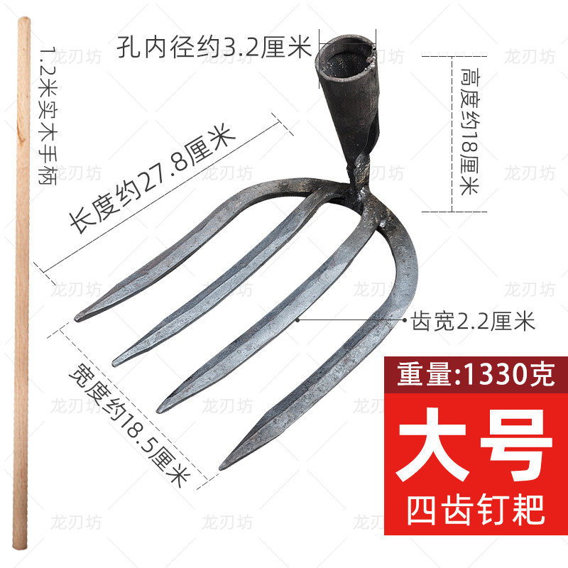 耙子农具多功能钢扒子铁耙子小耙子搂草松土种菜园林工具四齿钉耙
